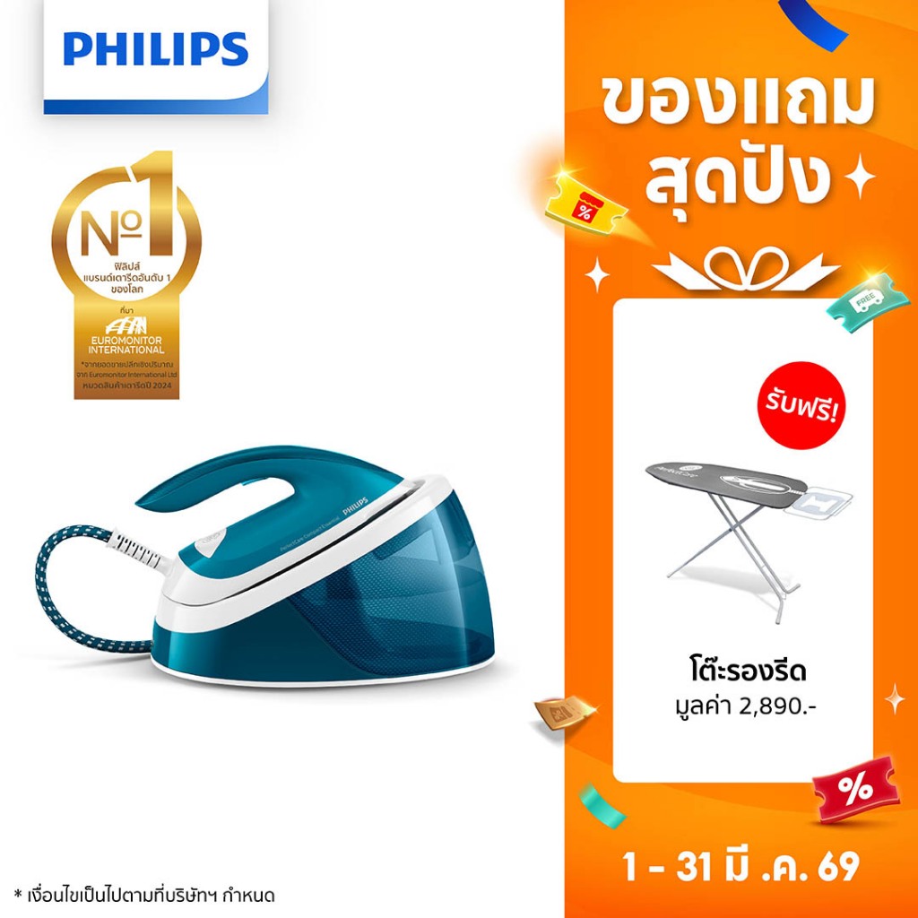 Philips GC6815 เตารีด แรงดันไอน้่ำ 6 บาร์ Optimal TEMP การันตีไม่มีผ้าไหม้ รีดเรียบเร็ว รับประกัน 2 ปี