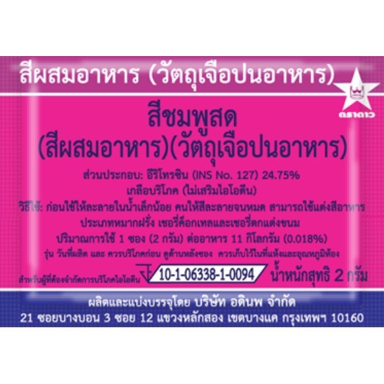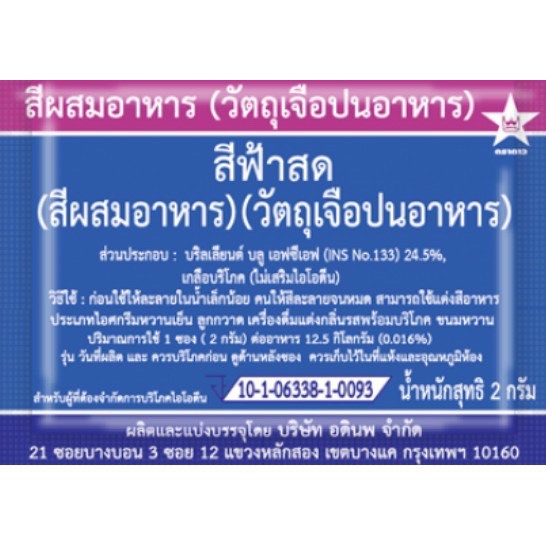 สีผสมอาหาร ตราดาว แบบซอง ผงละลายน้ำ