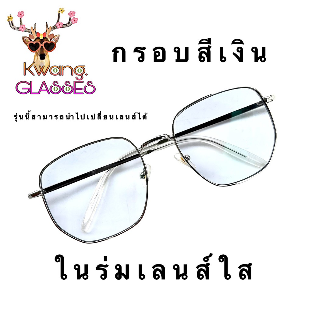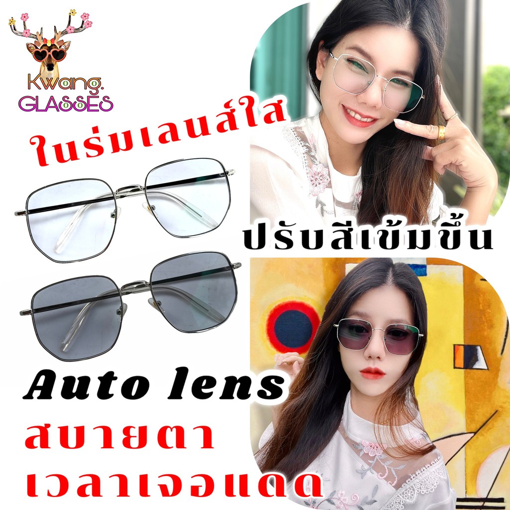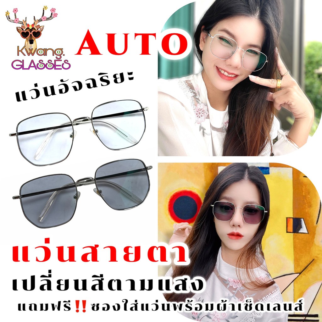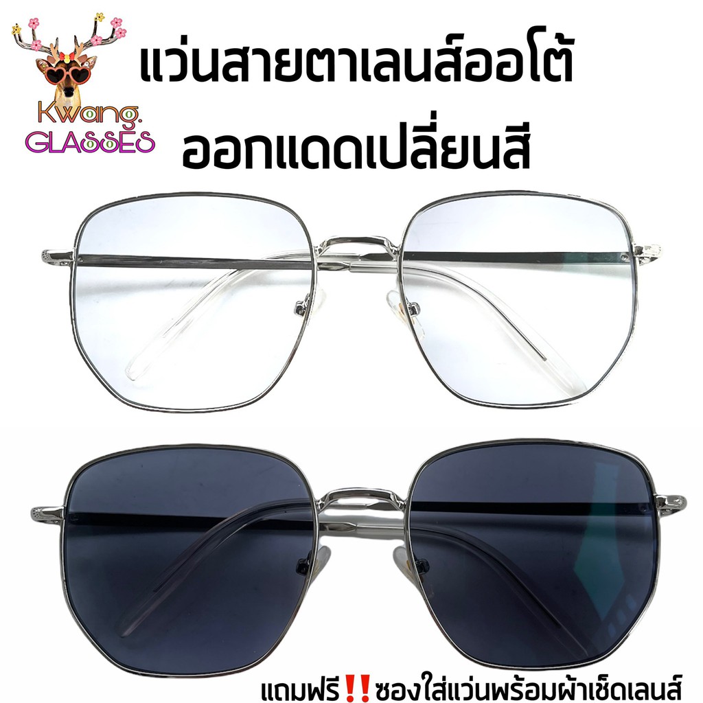 phariya_glasses Auto เปลี่ยนสี ทรงเหลี่ยม Square ขาสปริง สีเงิน แว่นสายตายาว แว่นสายตาสั้น แว่นตาราคาถูก แถมซอง และ ผ้า