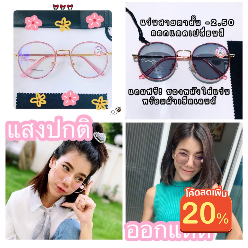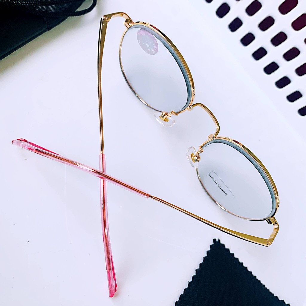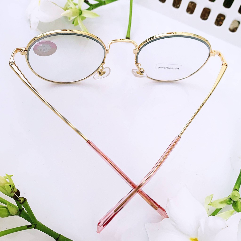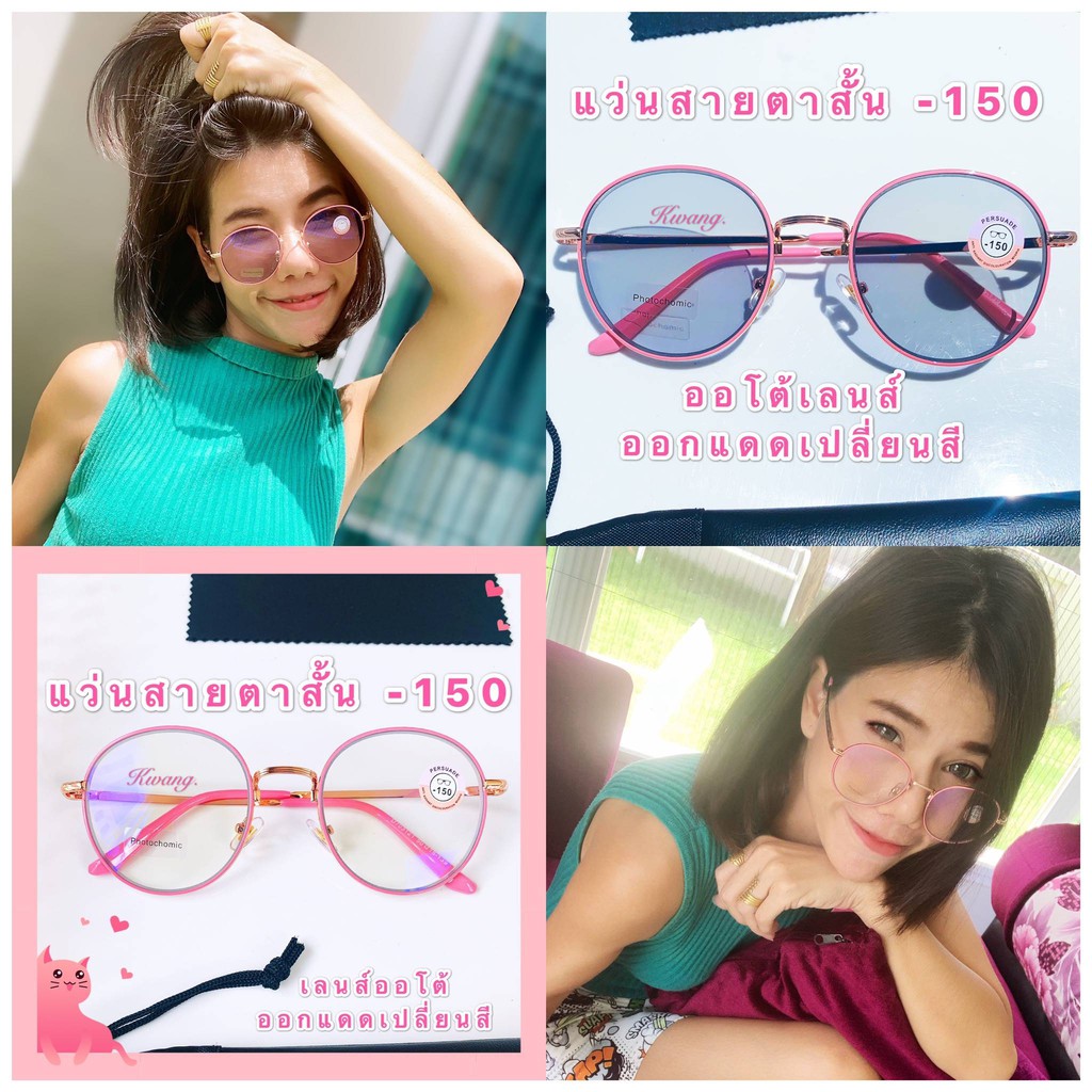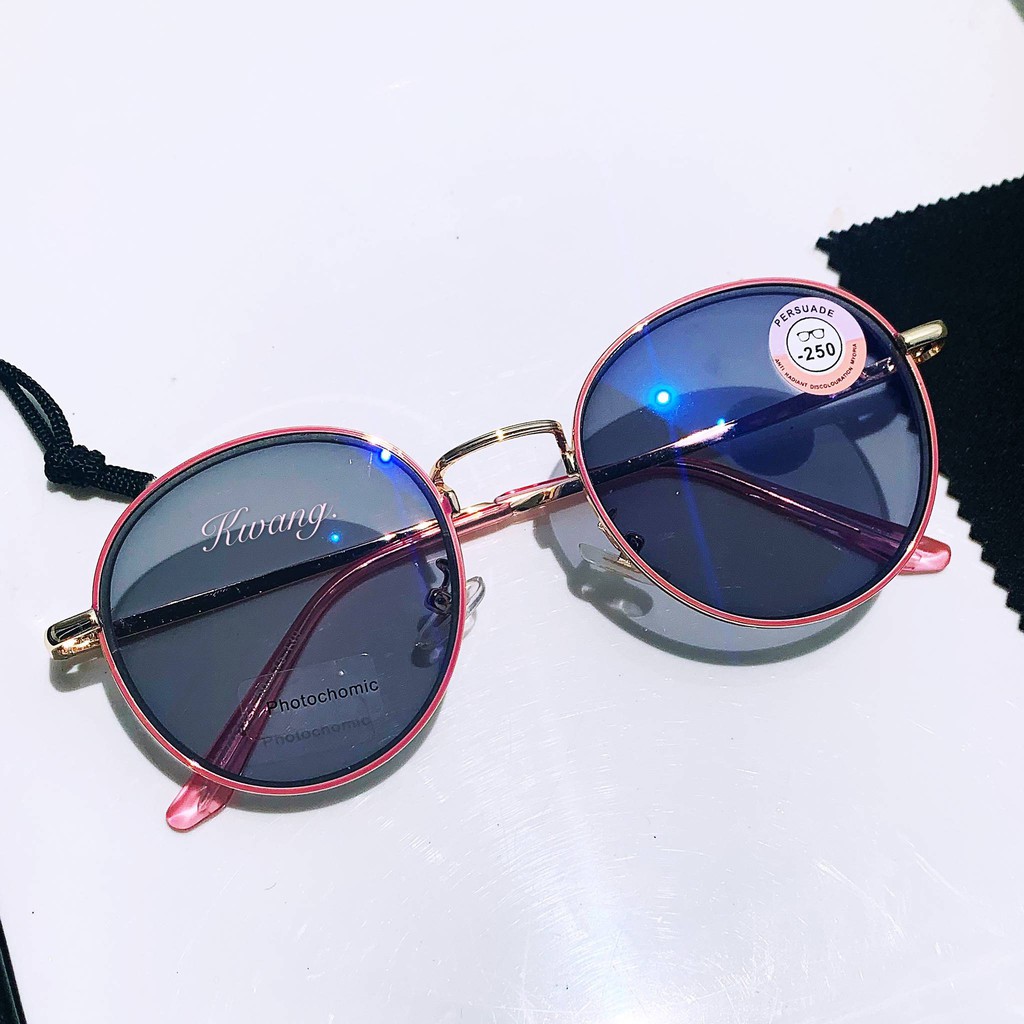 Auto glasses Pink Gold แว่นสายตาสั้น สีพิ้งค์โกลด์ แว่นออโต้ เลนส์เปลี่ยนสี ทรงหยดน้ำ แว่นตา แถม ซอง + ผ้า