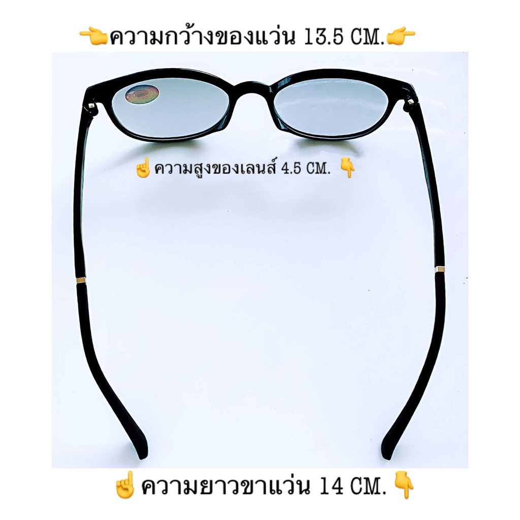 กดเลือกเลนส์ได้เลย แว่นสายตายาว ออโต้เลนส์ สีดำล้วน มีตั้งแต่0.50ถึง4.00 ทรงรี น้ำหนักเบามาก ปรับสีเข้มขึ้นโดยอัตโนมัติ
