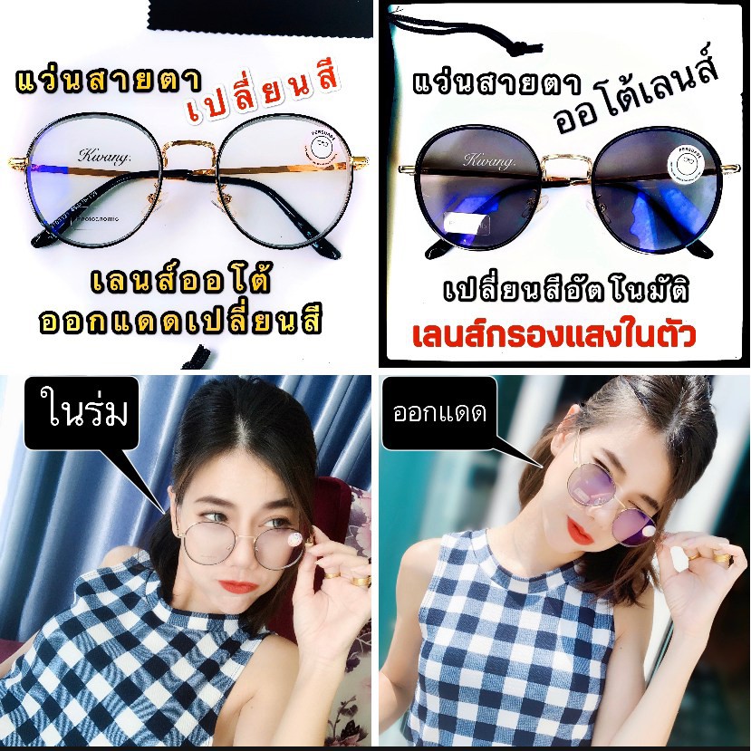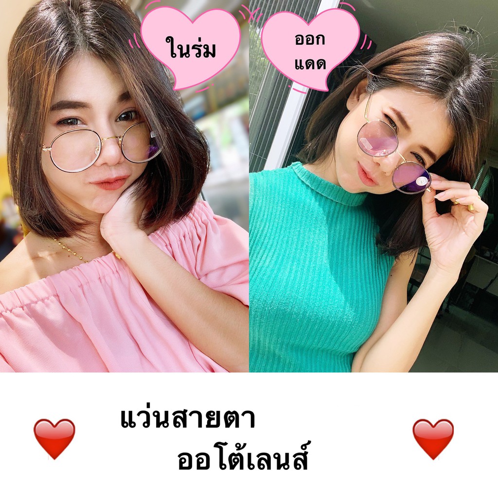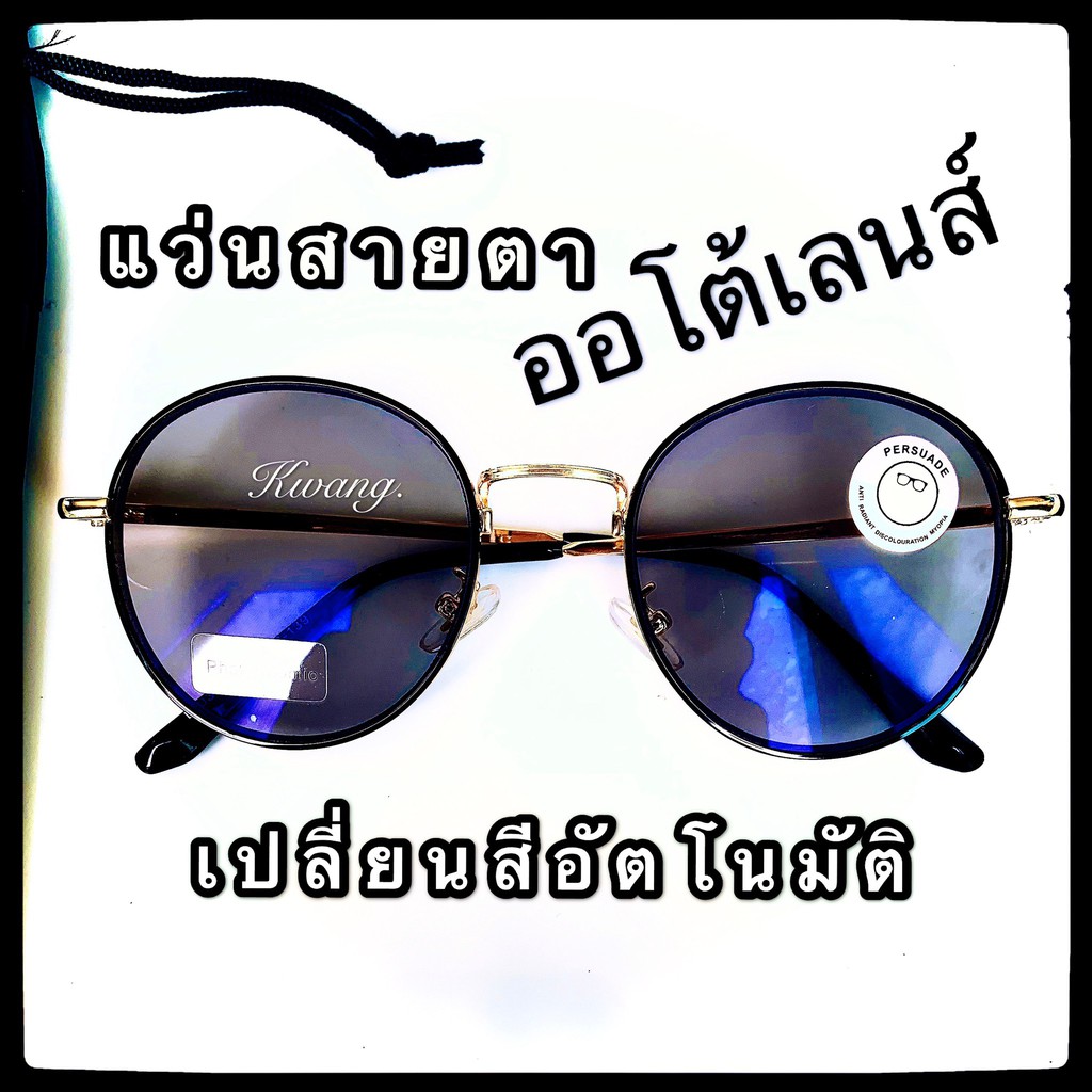 แว่นเปลี่ยนสี แว่นสายตาสั้น แว่นตาออโต้เลนส์ ปรับสีเข้มขึ้นอัตโนมัติ มี 4 สี ทรงหยดน้ำ แว่นกรองแสง แว่นตา Auto glasses