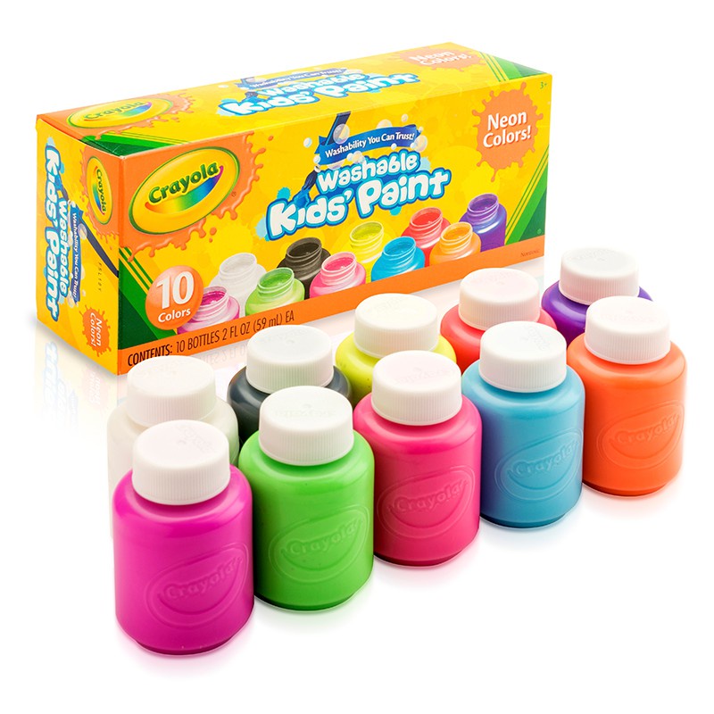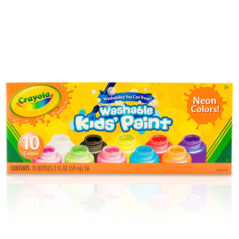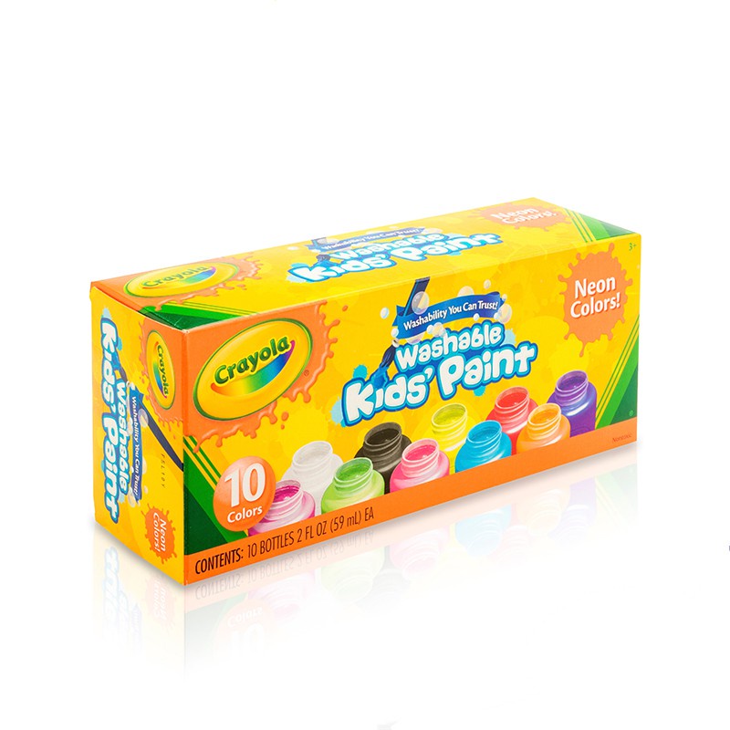 Crayola เครโยล่า สีน้ำนีออนล้างออกได้ในขวดพลาสติก 10 สี ขนาด 2 ออนซ์ สำหรับเด็ก อายุ 3 ปี ขึ้นไป