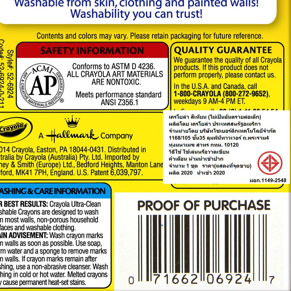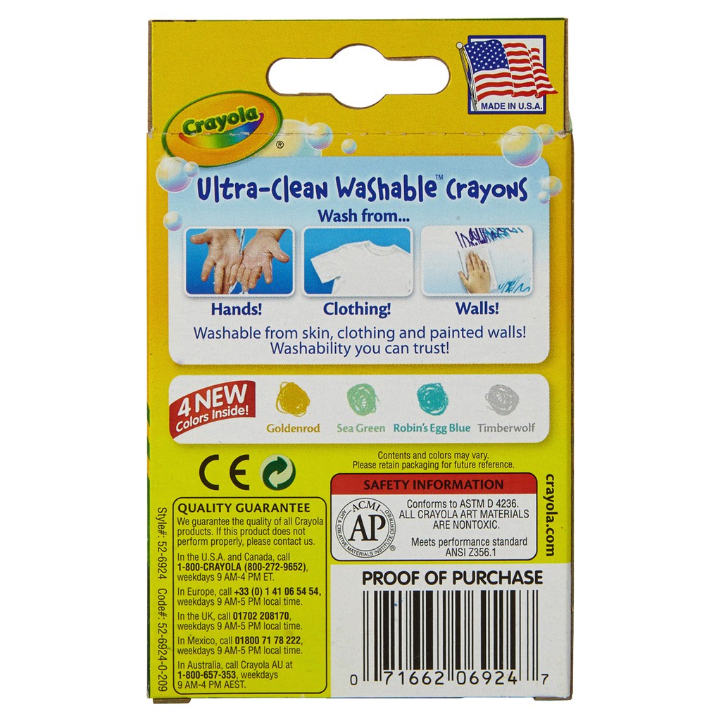 Crayola Ultra Clean Washable Crayons เครโยล่า สีเทียนล้างออกได้ อัลตร้าคลีน 24แท่งสำหรับเด็ก