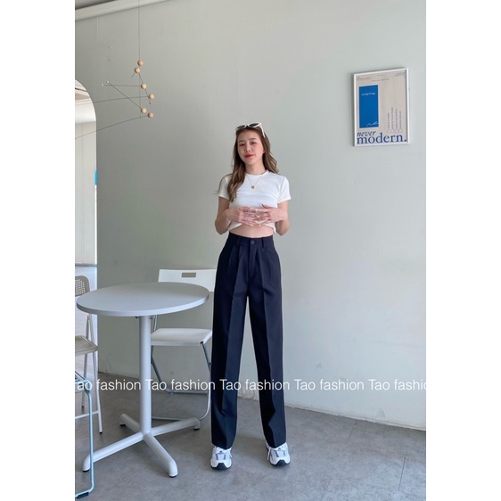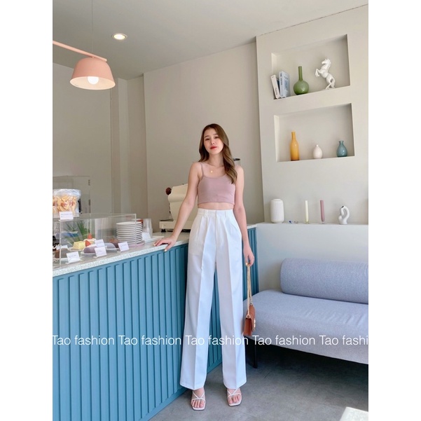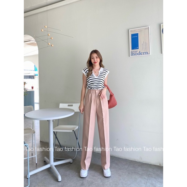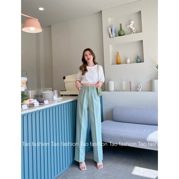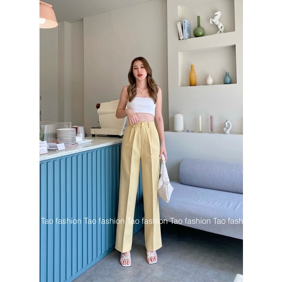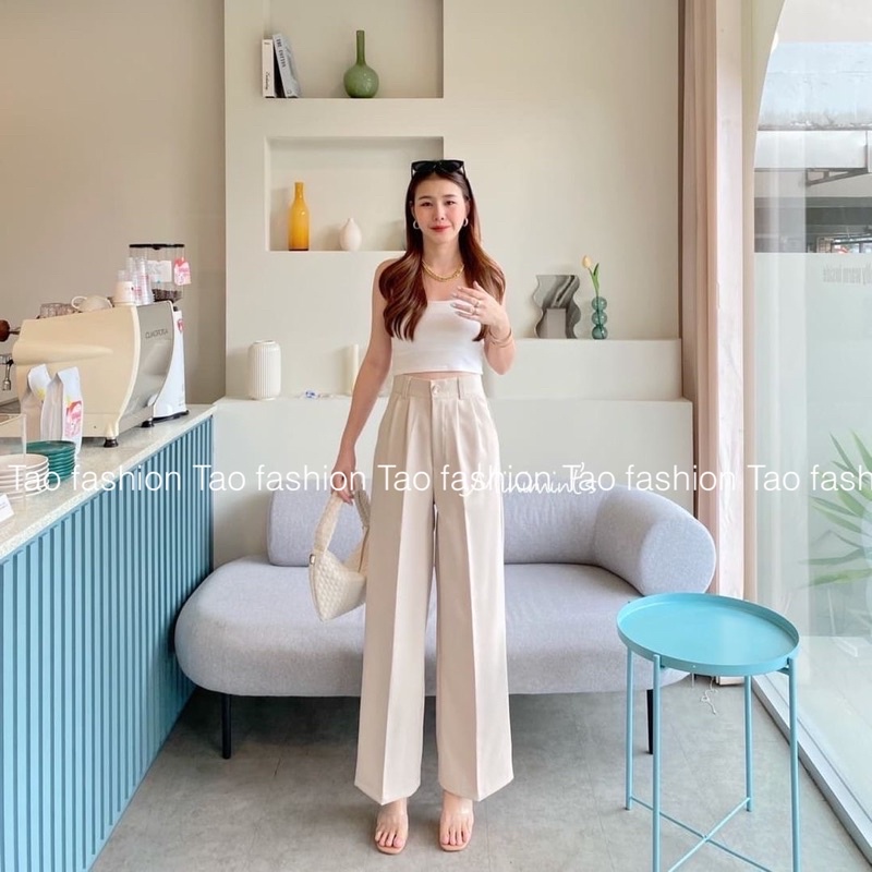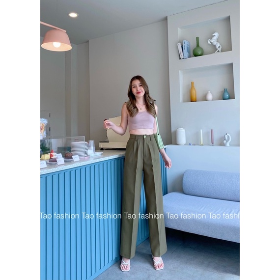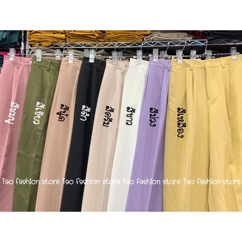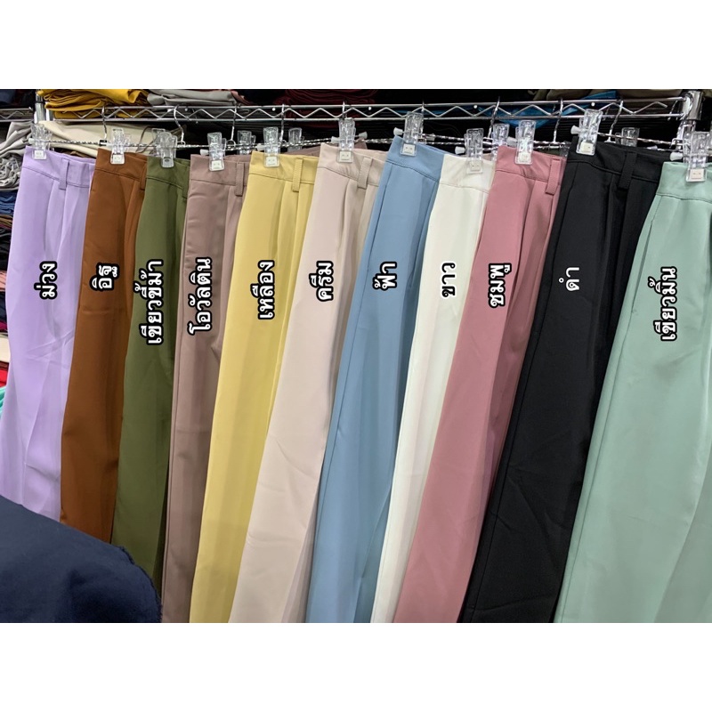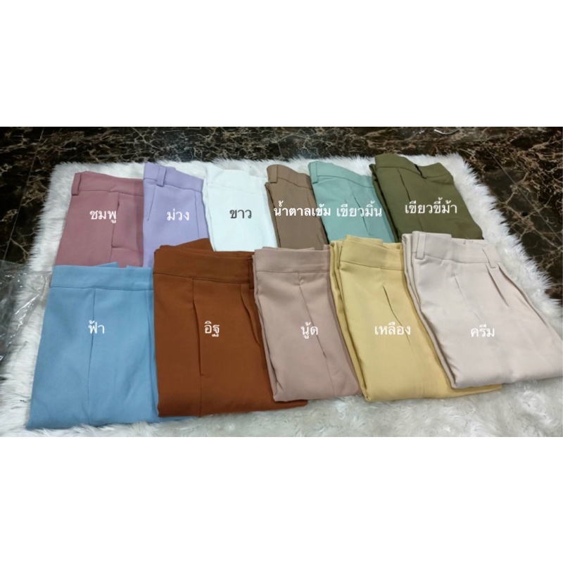 กางเกงทรงกระบอก แต่งกระดุมหน้ามีหูเข็มขัดผ้าไมโคร