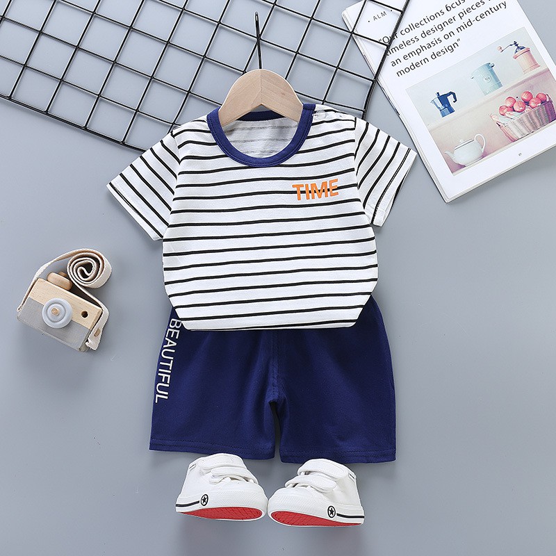 ชุดเสื้อยืดแขนสั้นและกางเกงขาสั้น เนื้อผ้าฝ้าย แฟชั่นฤดูร้อน สำหรับเด็กผู้ชายและผู้หญิง อายุ 0-5 ปี
