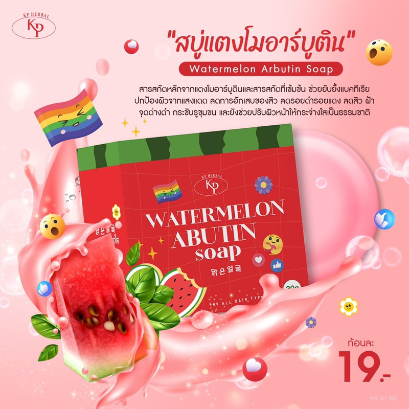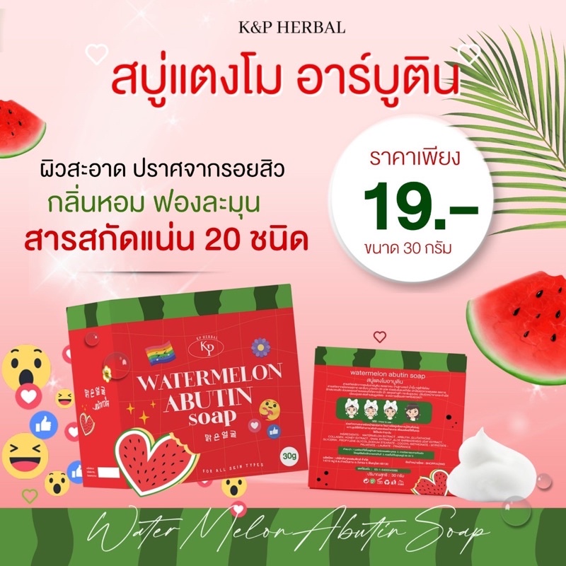 สบู่แตงโม อาร์บูติน [ ใส่โค้ด MNJ338D ลด15% ] ลุ้นทอง ลดสิวรอยจุดด่างดำเพื่อผิวขาวกระจ่างใส