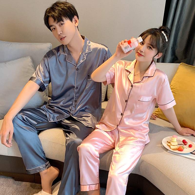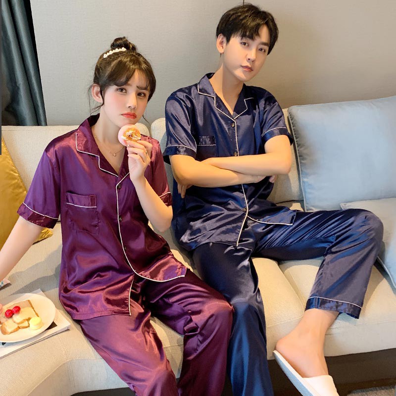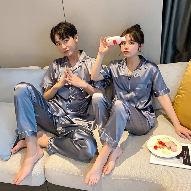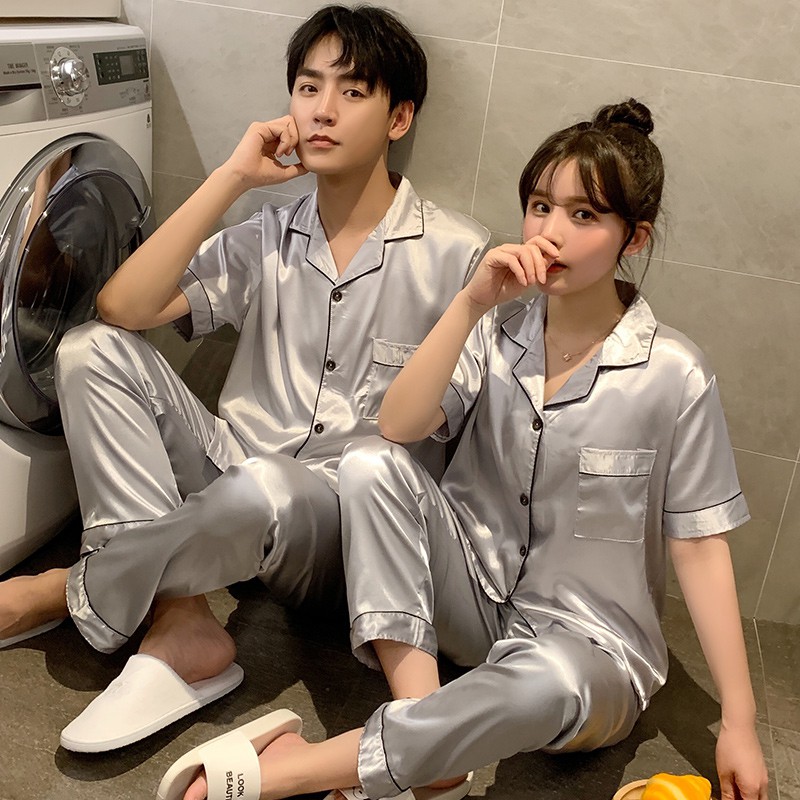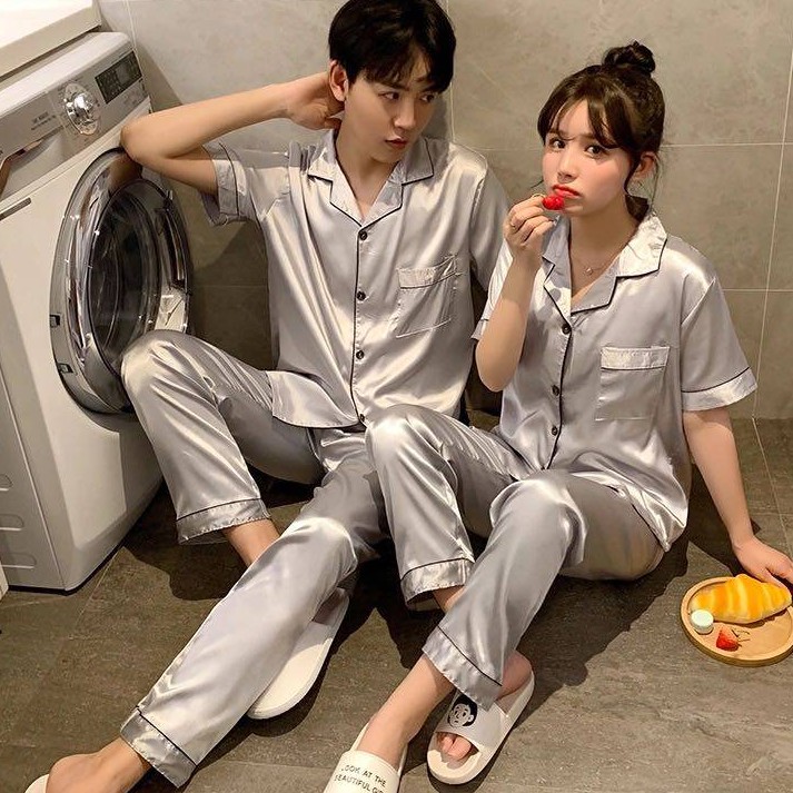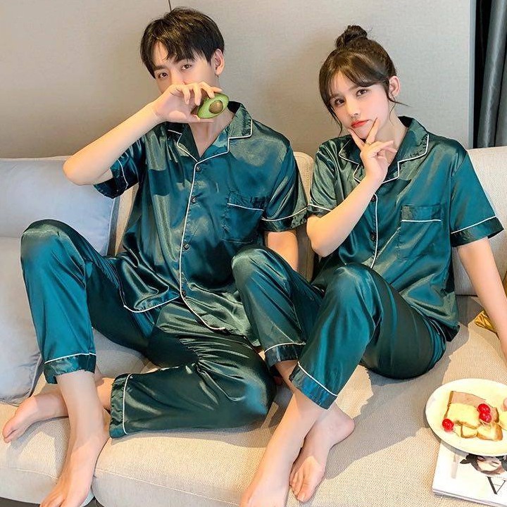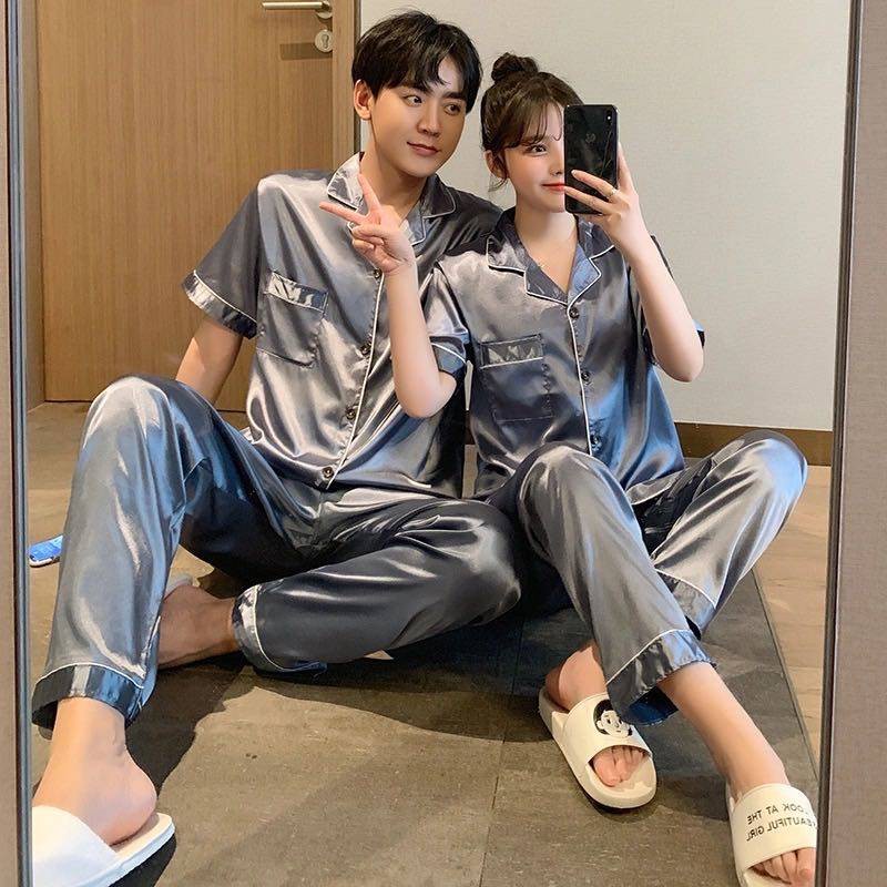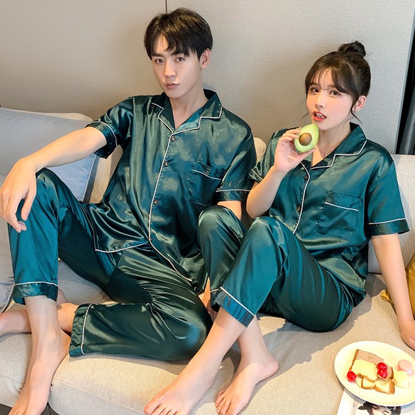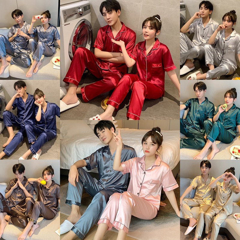 ชุดนอนคู่ ผ้าซาติน สีพื้น