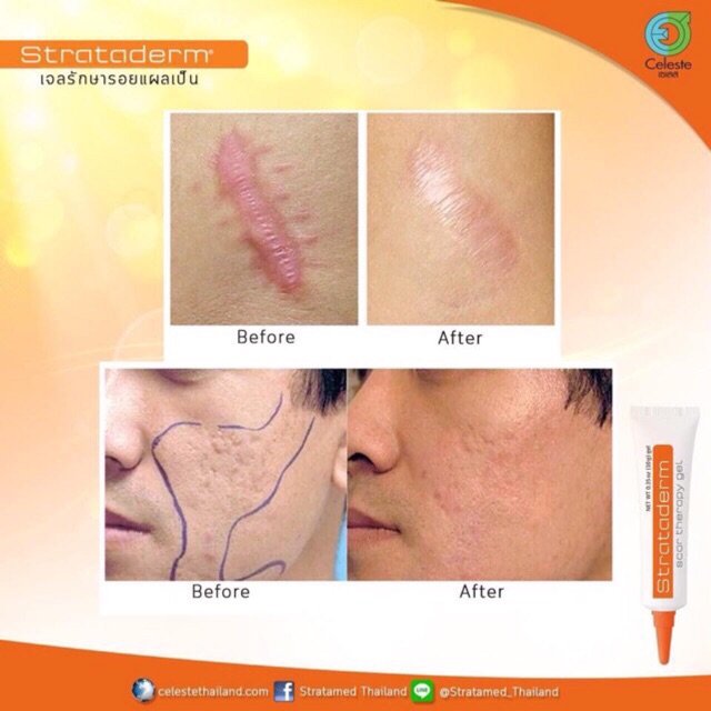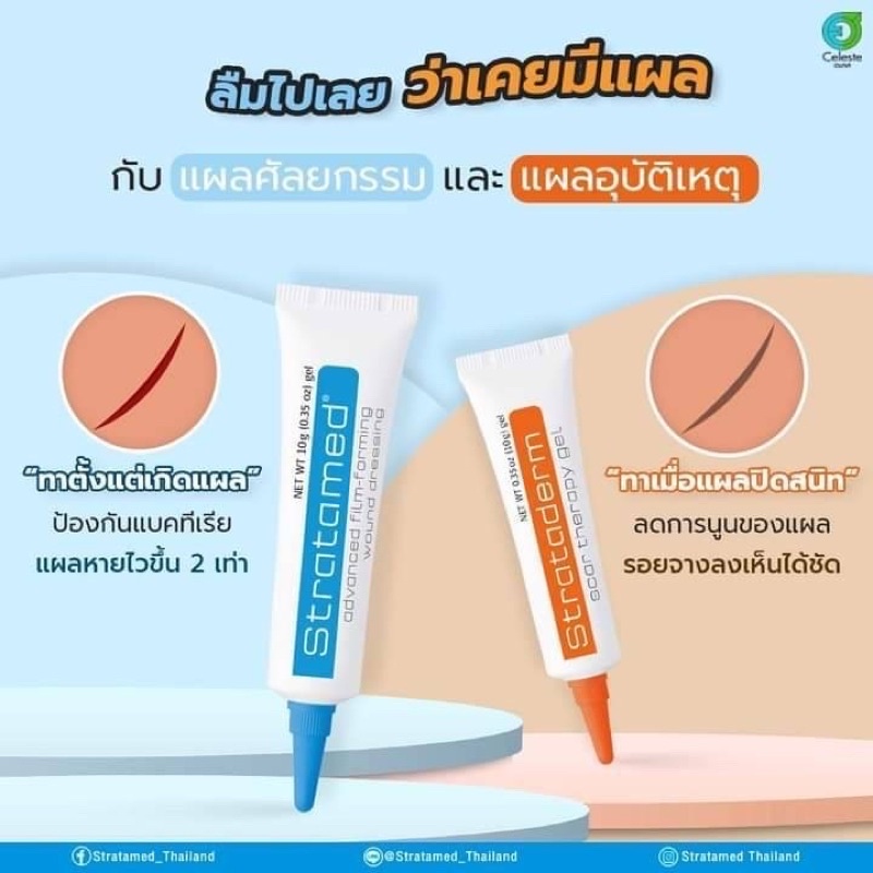 Exp2028 สู้แผลเป็น Stratamed / Strataderm 5-10g เจลสีฟ้า เจลสีส้ม ออกใบกำกับภาษีได้ แผลเป็นนูน คีลอย