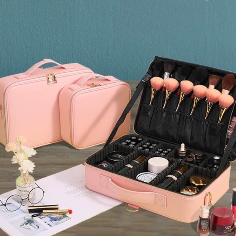 กระเป๋าเครื่องสำอาง Pu กันน้ำ กระเป๋าแต่งหน้า เอนกประสงค์ PU / ผ้าหนาใหญ่จุใจ สีชมพู สีดำ ลายหินอ่อนสวย พร้อมส่ง