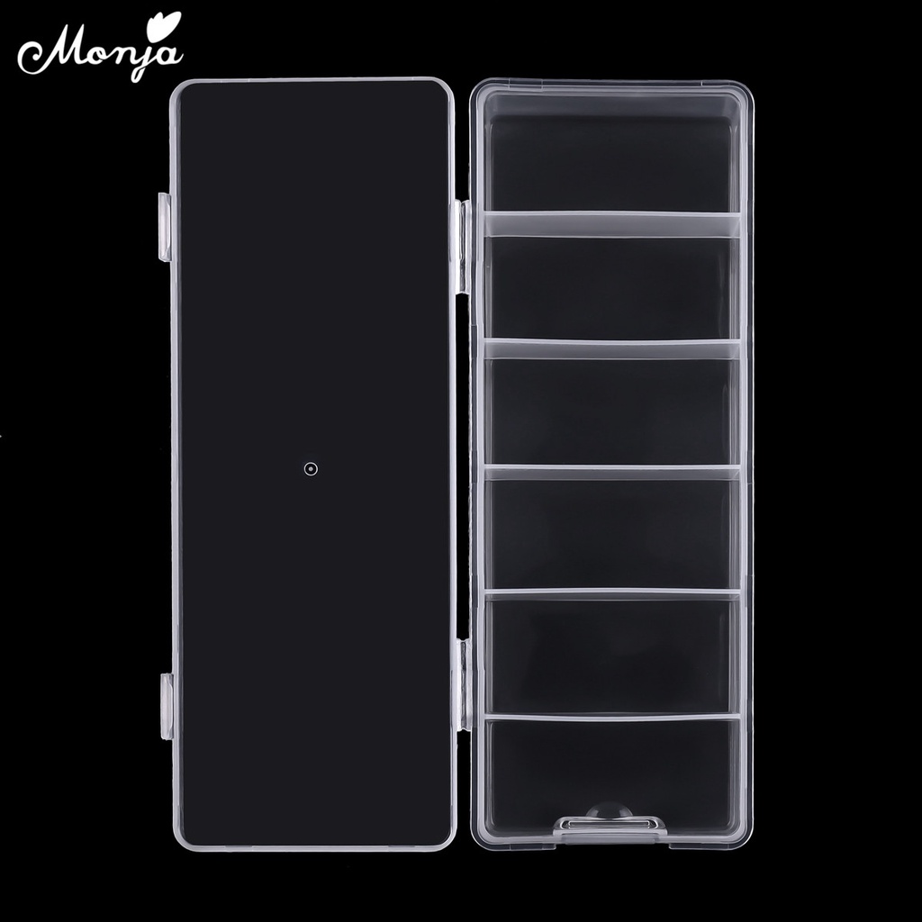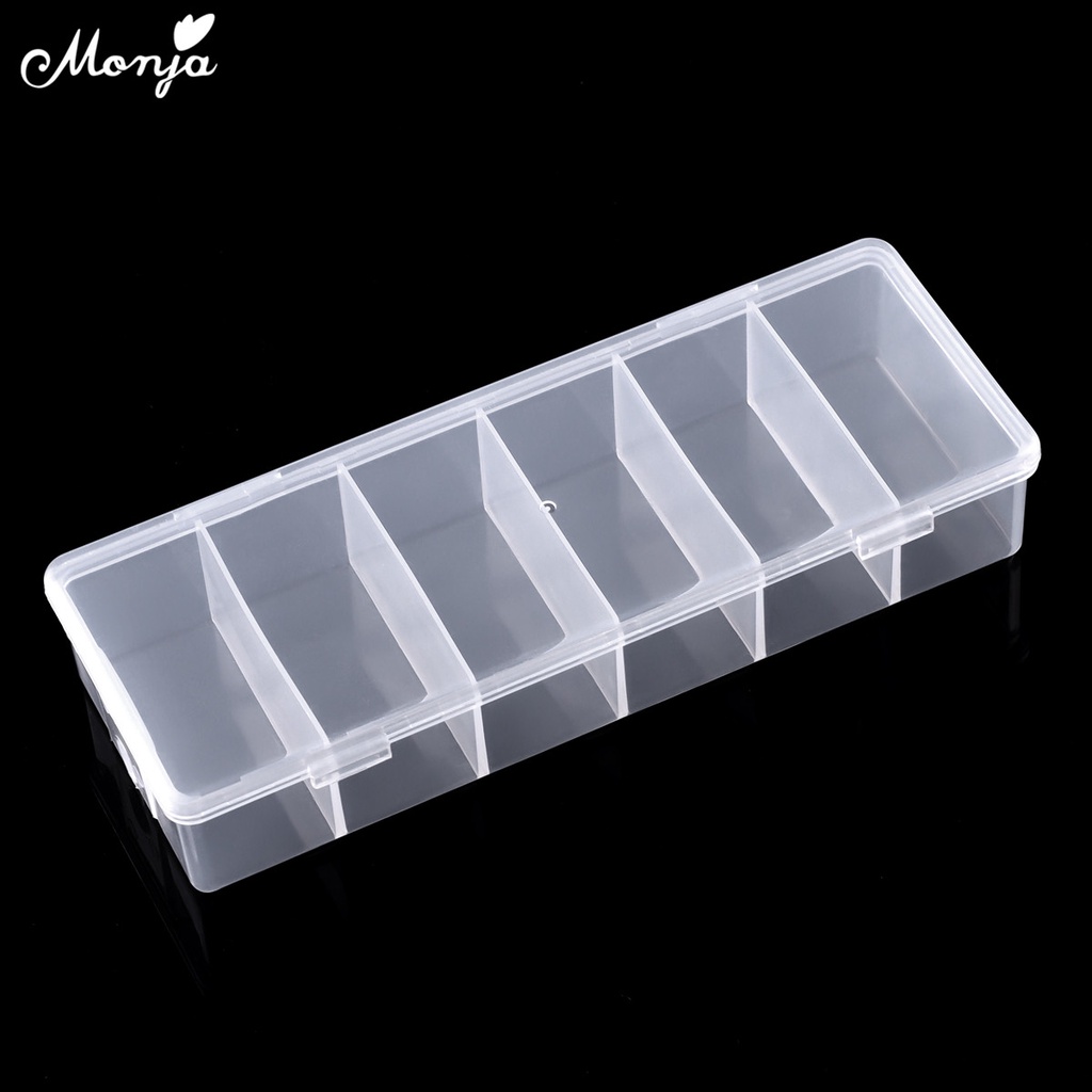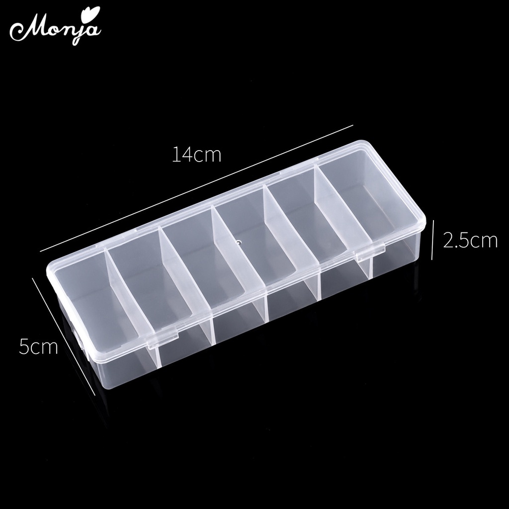 Monja กล่องพลาสติกใส ทรงสี่เหลี่ยม 6 ช่อง 6 ช่อง สําหรับใส่เพชรเทียม คริสตัล ตกแต่งเล็บ