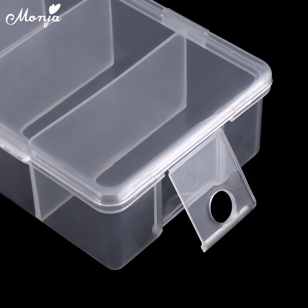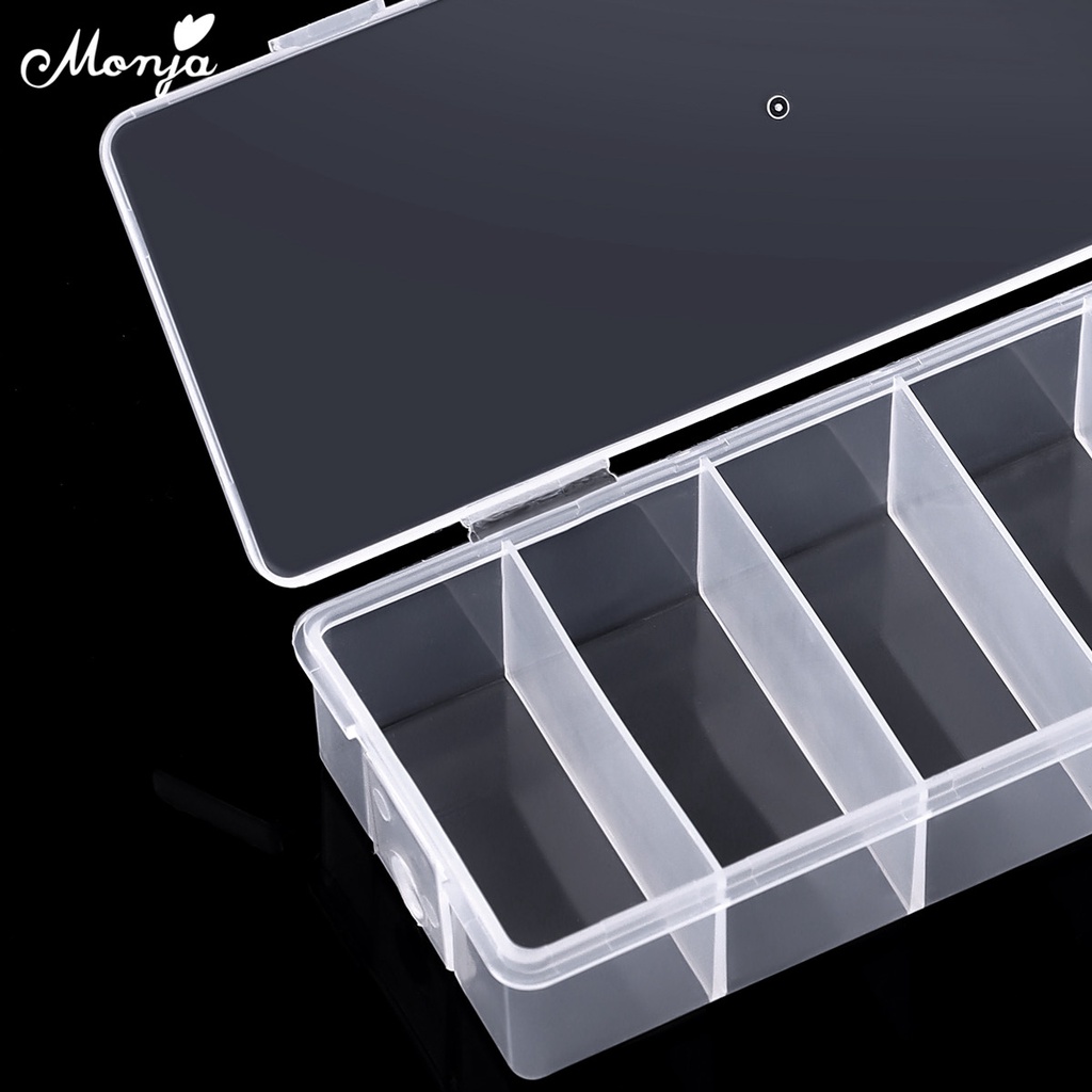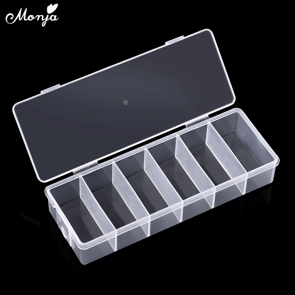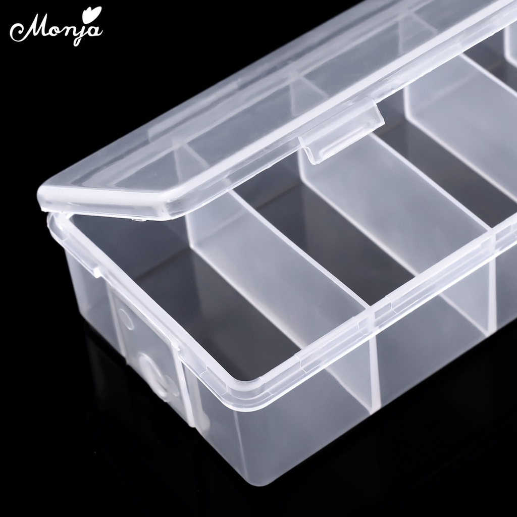 Monja กล่องพลาสติกใส ทรงสี่เหลี่ยม 6 ช่อง 6 ช่อง สําหรับใส่เพชรเทียม คริสตัล ตกแต่งเล็บ