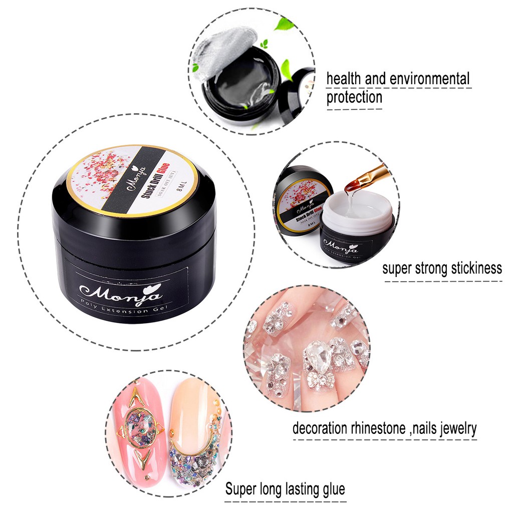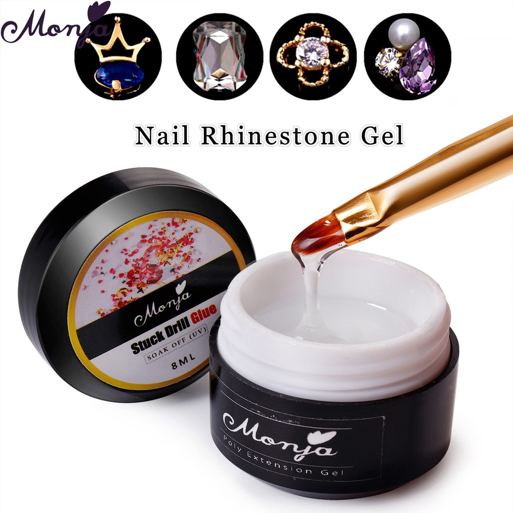 Monja กาวเจล พลอยเทียม ใส สําหรับตกแต่งเล็บ กาวติดเล็บเจลยูวี แบบแห้งเร็ว สําหรับตกแต่งเล็บอะคริลิค