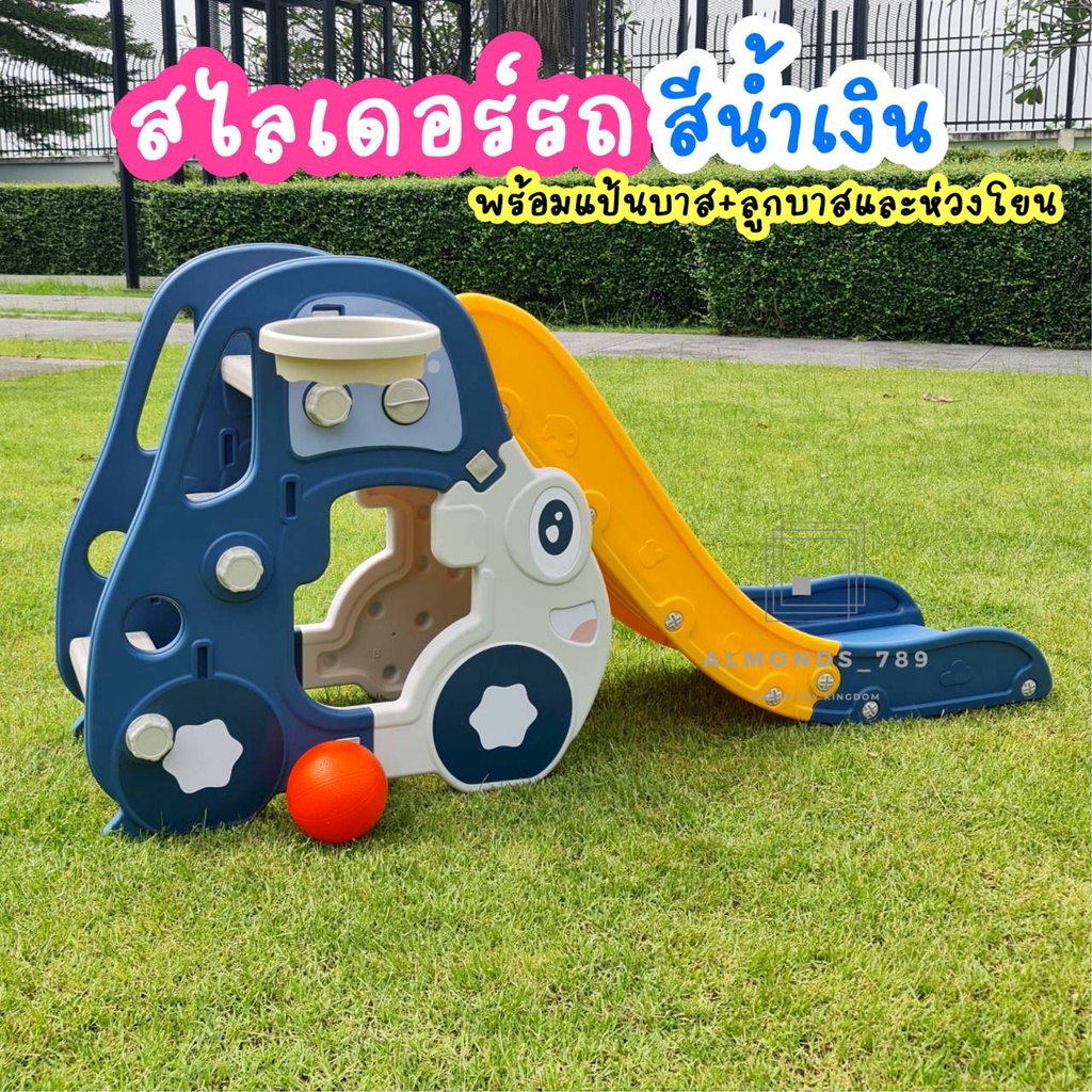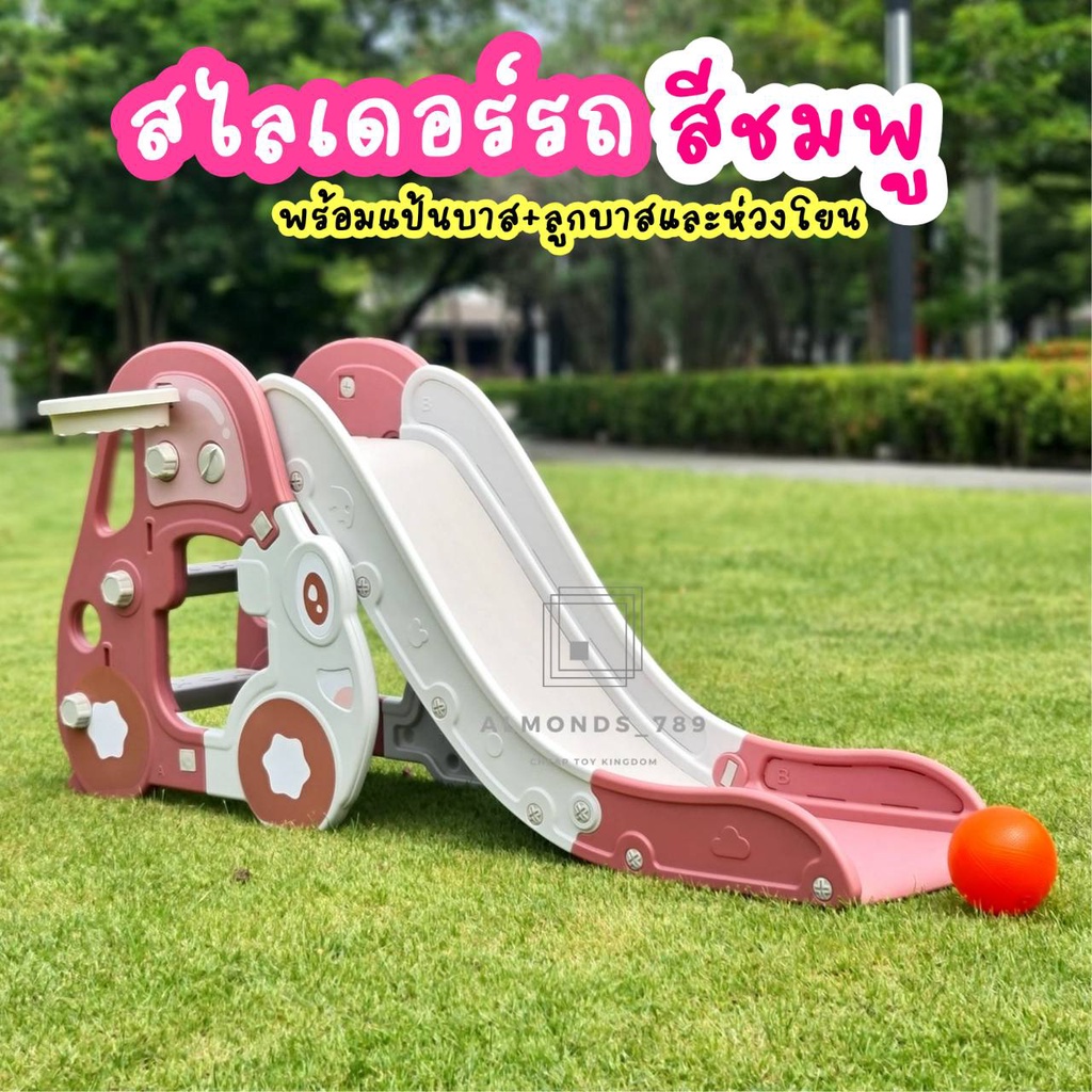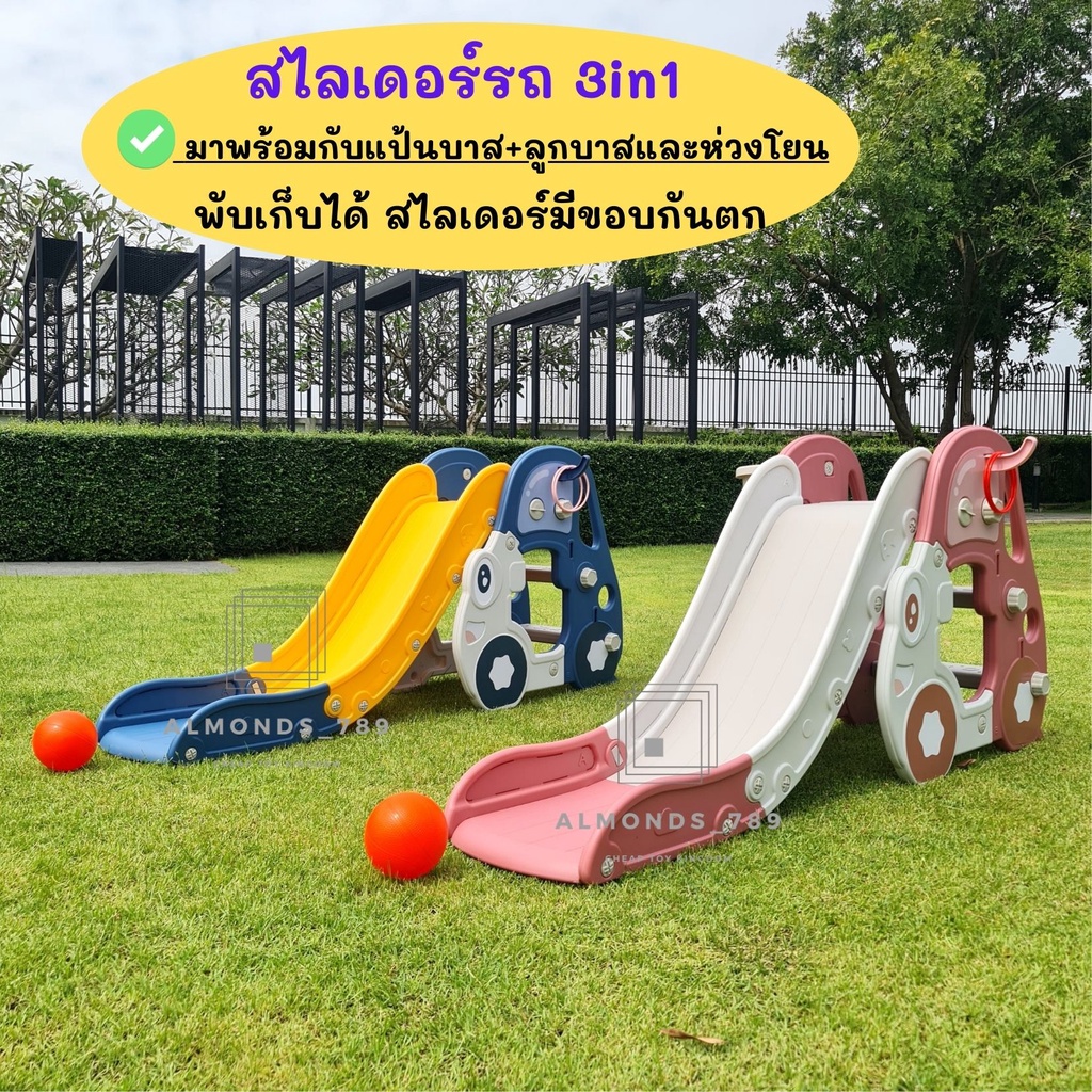 สไลเดอร์รถ สไลเดอร์เด็ก 3in1พร้อมแป้นบาส+ลูกบาสและห่วงโยน พับเก็บได้ สไลเดอร์มีขอบกันตก มีโฟมกันลื่นแข็งแรงทนทาน [YY-01]