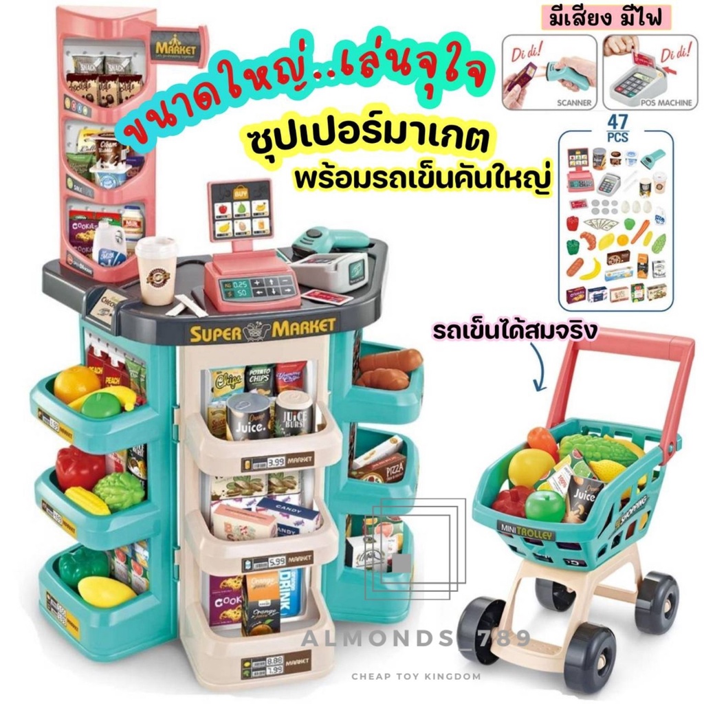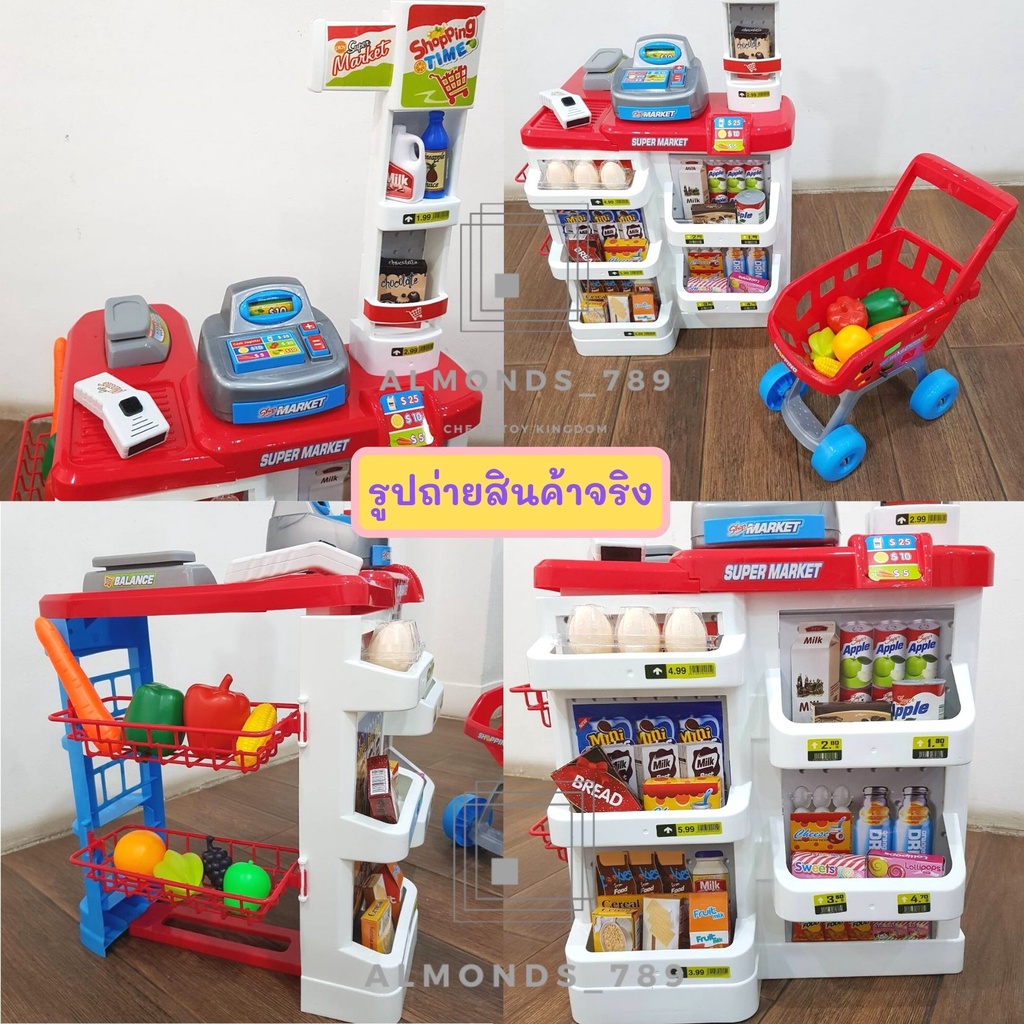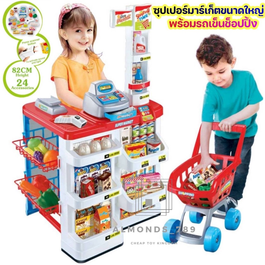 ของเล่นเด็ก ซุปเปอร์มาร์เก็ตขายของ แคชเชียร์เด็กเล่น บาร์โค้ดมีไฟ มีเสียง รถเข็นซุปเปอร์มาร์เก็ต
