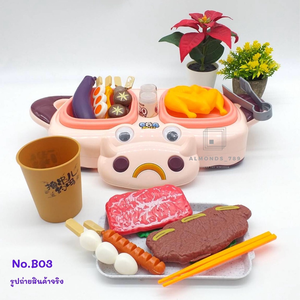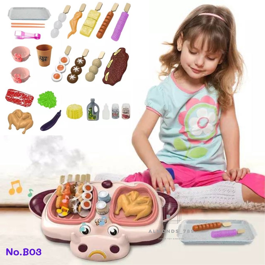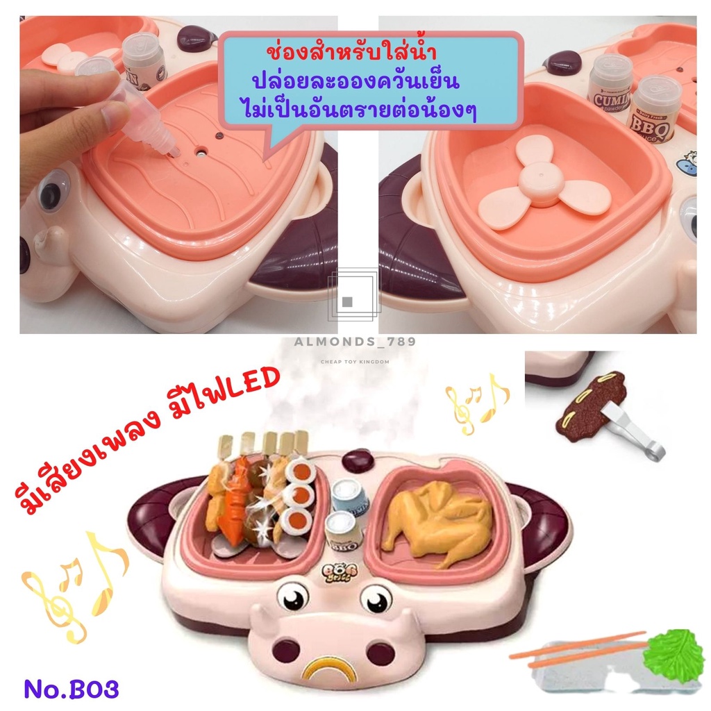 ครัวของเล่น ครัวจำลอง เตาย่างบาบีคิว หม้อนึ่งติ่มซำ เตามีไฟมีเสียงและควันลมเย็น ของเล่นเด็ก