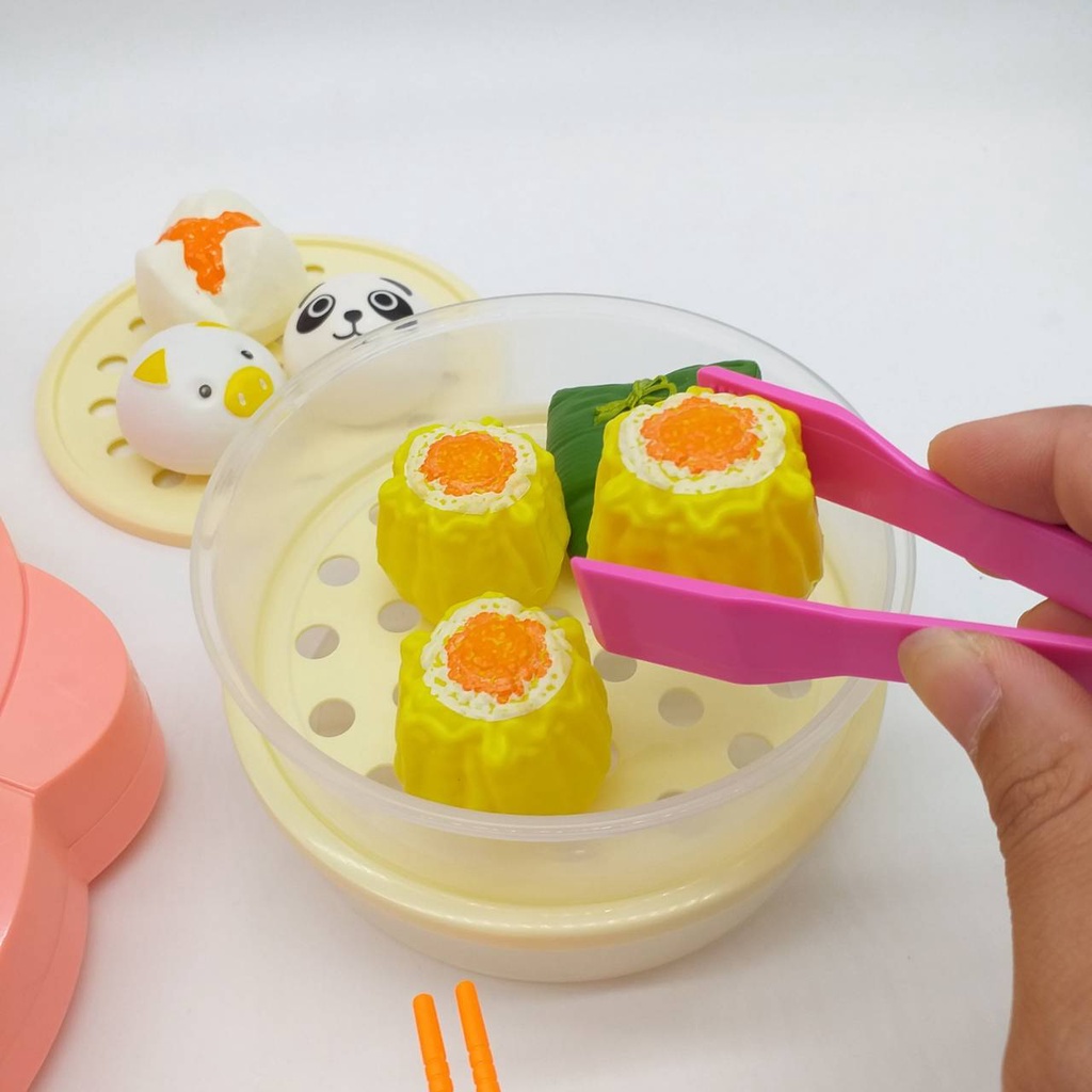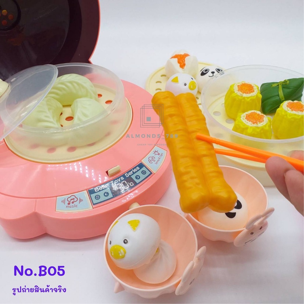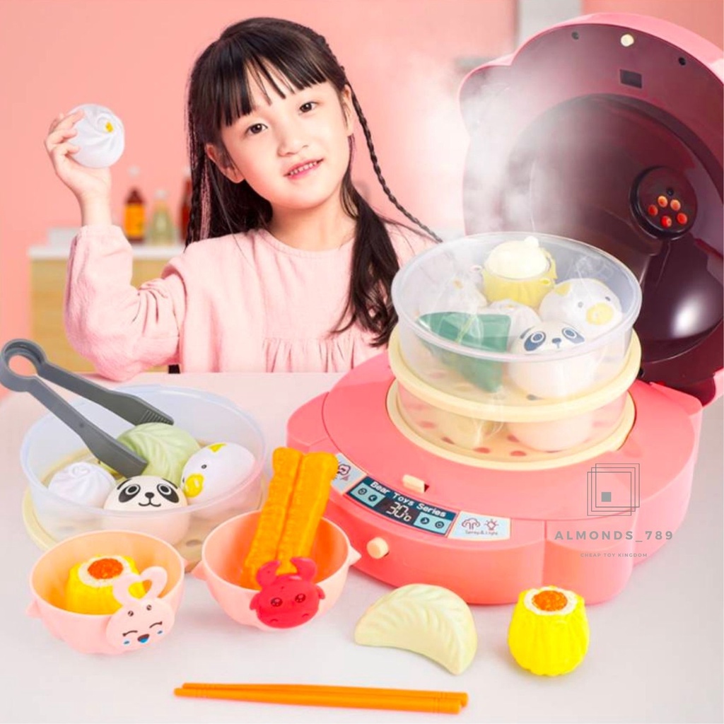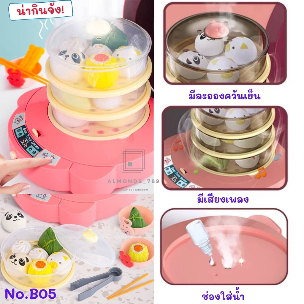 ครัวของเล่น ครัวจำลอง เตาย่างบาบีคิว หม้อนึ่งติ่มซำ เตามีไฟมีเสียงและควันลมเย็น ของเล่นเด็ก