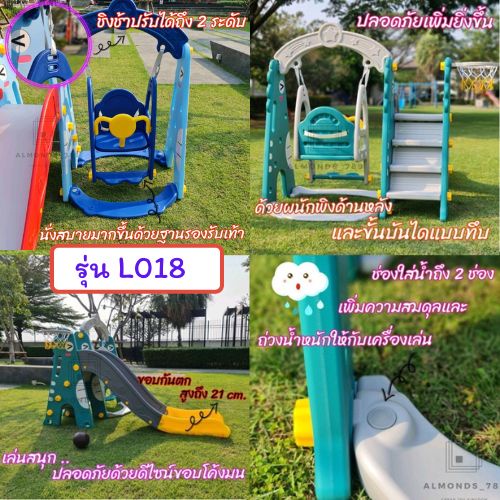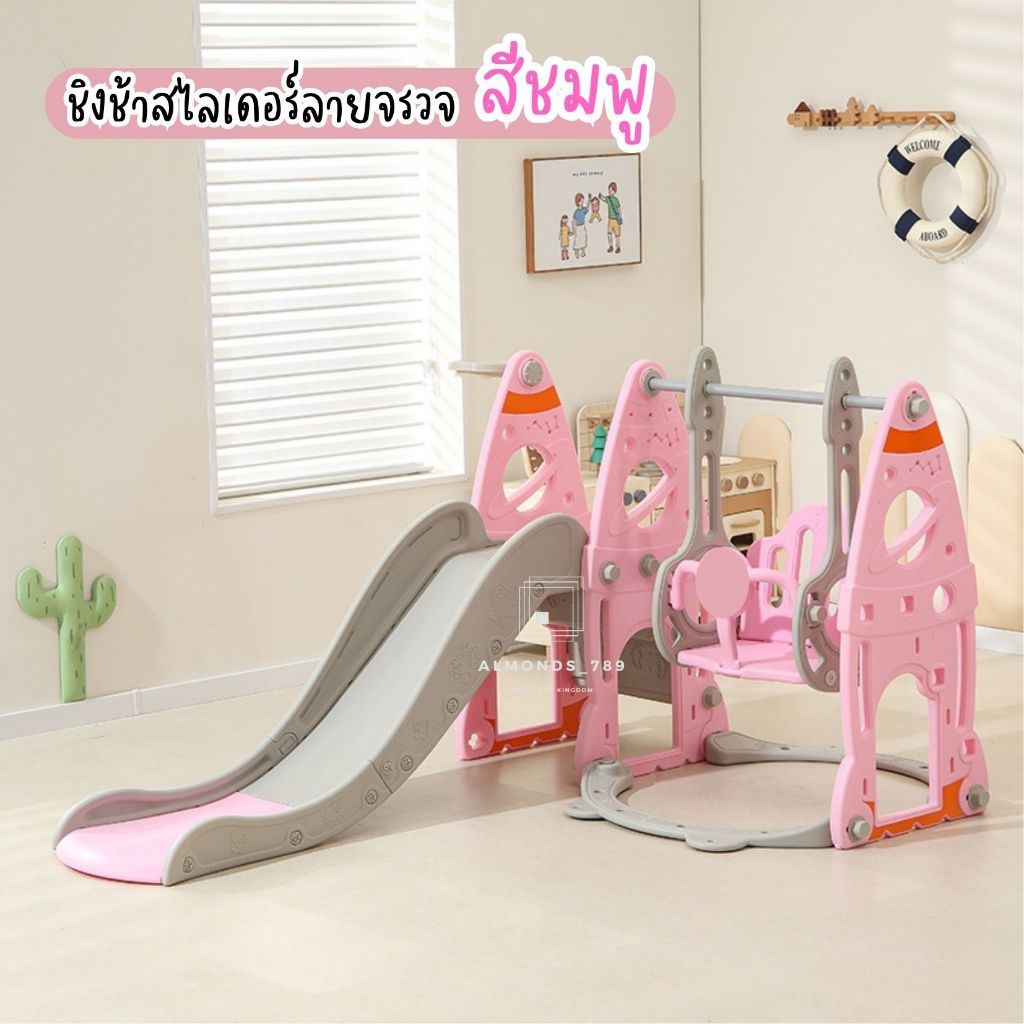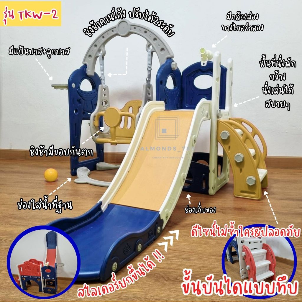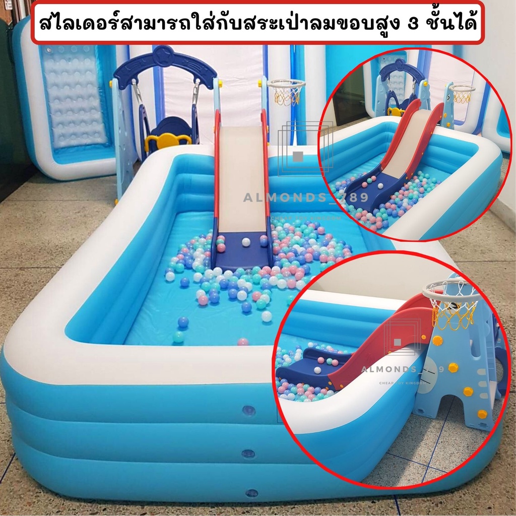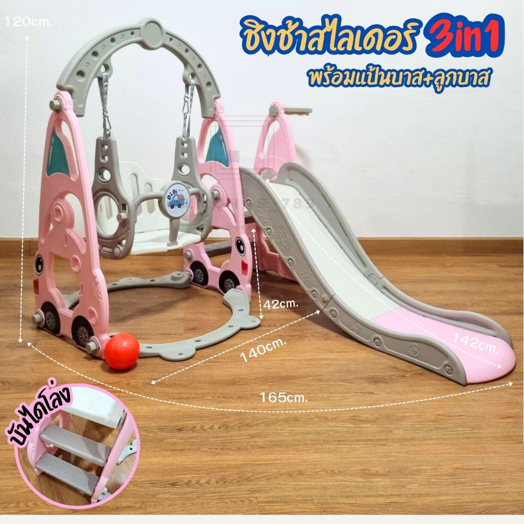 สไลเดอร์เด็กมีชิงช้า พร้อมแป้นบาสลูกบาส 3in1 ของเล่นเด็ก สไลเดอร์มีขอบกันตก ขั้นบันไดแบบทึบปลอดภัย