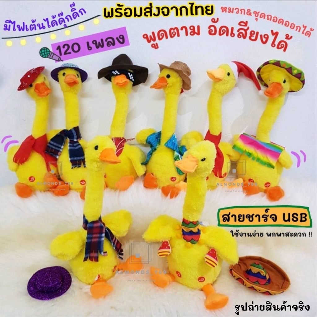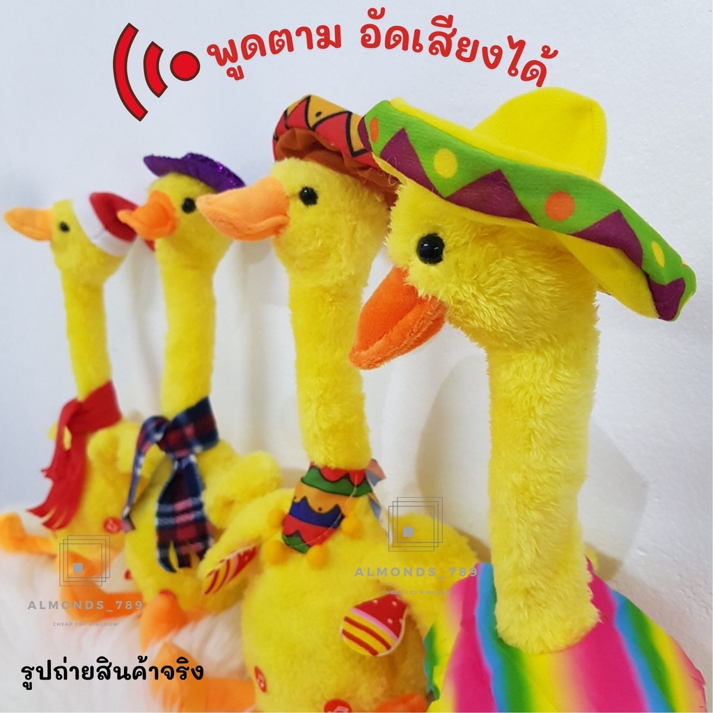น้องบอง น้องบองพูดได้ เป็ดพูดได้ ทุกรุ่นชาร์จUSB 120เพลงใหม่ พูดตาม อัดเสียง เต้นได้ มีไฟวิบวับ
