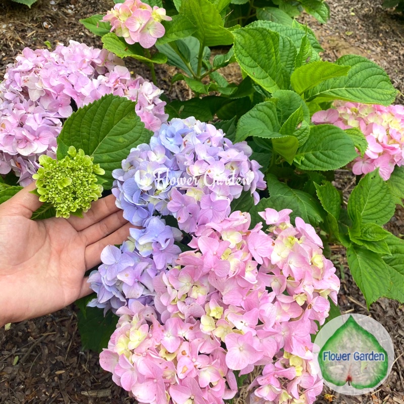 F118 ต้นไฮเดรนเยีย Hydrangea พันธุ์เบา โทนสีฟ้า ม่วง ชมพู ออกดอกทั้งปี แบบถุงพร้อมส่ง