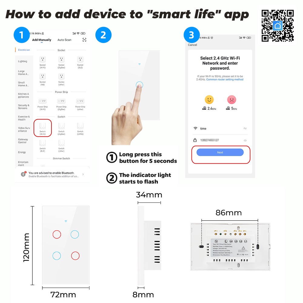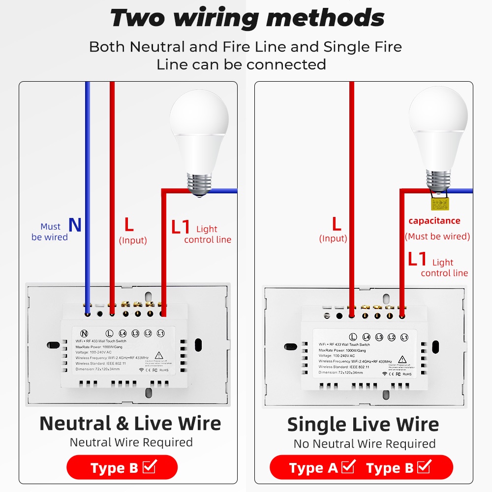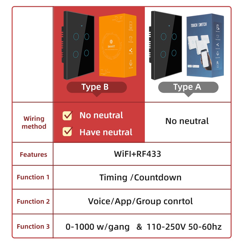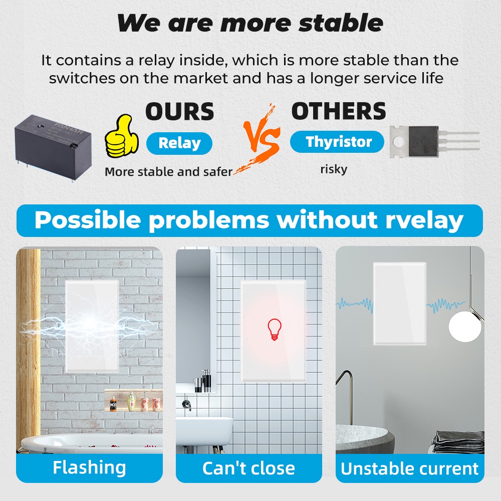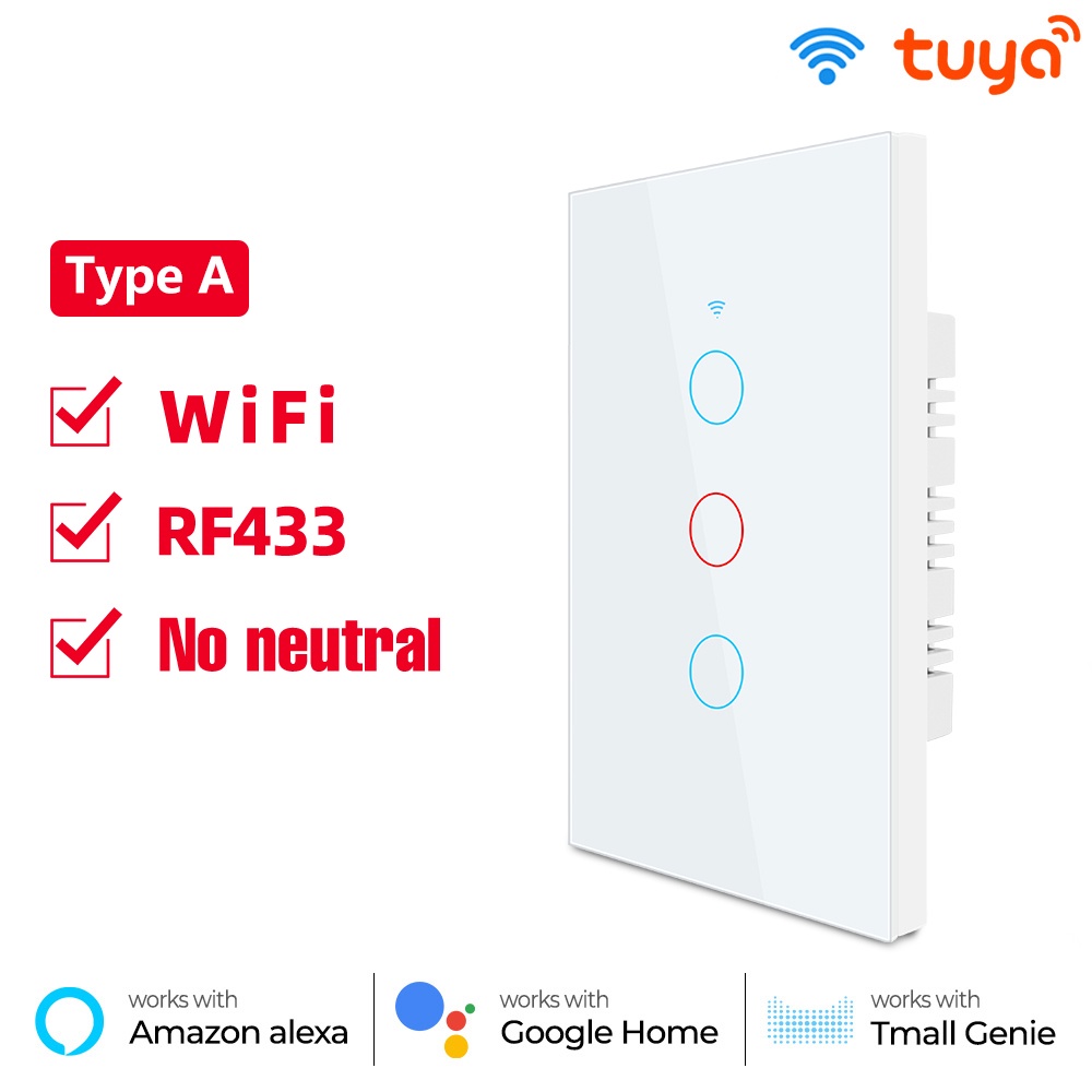 ROVF Tuya สวิตช์ไฟ Wifi Smart Switch (มี/ไม่มี Neutral) Wifi+RF433 สวิตช์ไฟสวิทช์ สวิตช์ไฟ สวิตช์ไฟสัมผัส สั่งงานไร้สาย Google Smart Home
