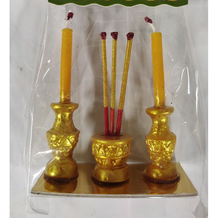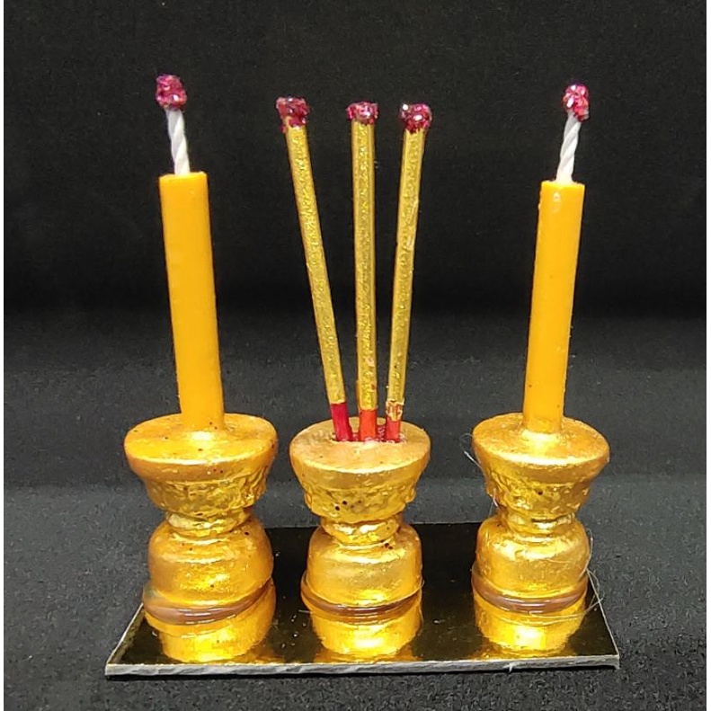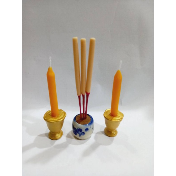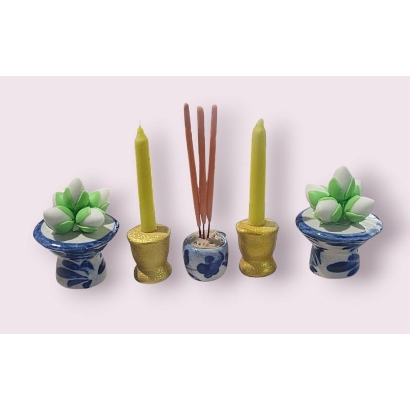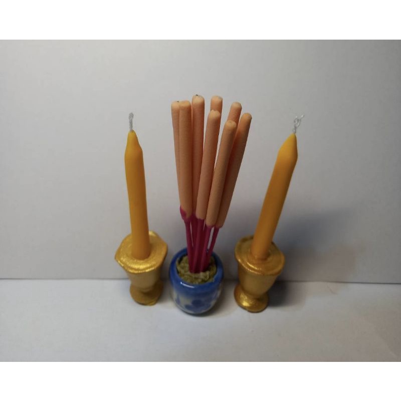 เซ็ทธูป เทียนจิ๋ว ขนาด 4.5, 6.5 ซม. ดอกไม้ประดิษฐ์ ดอกบัวประดิษฐ์