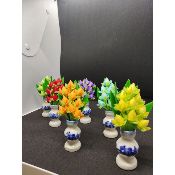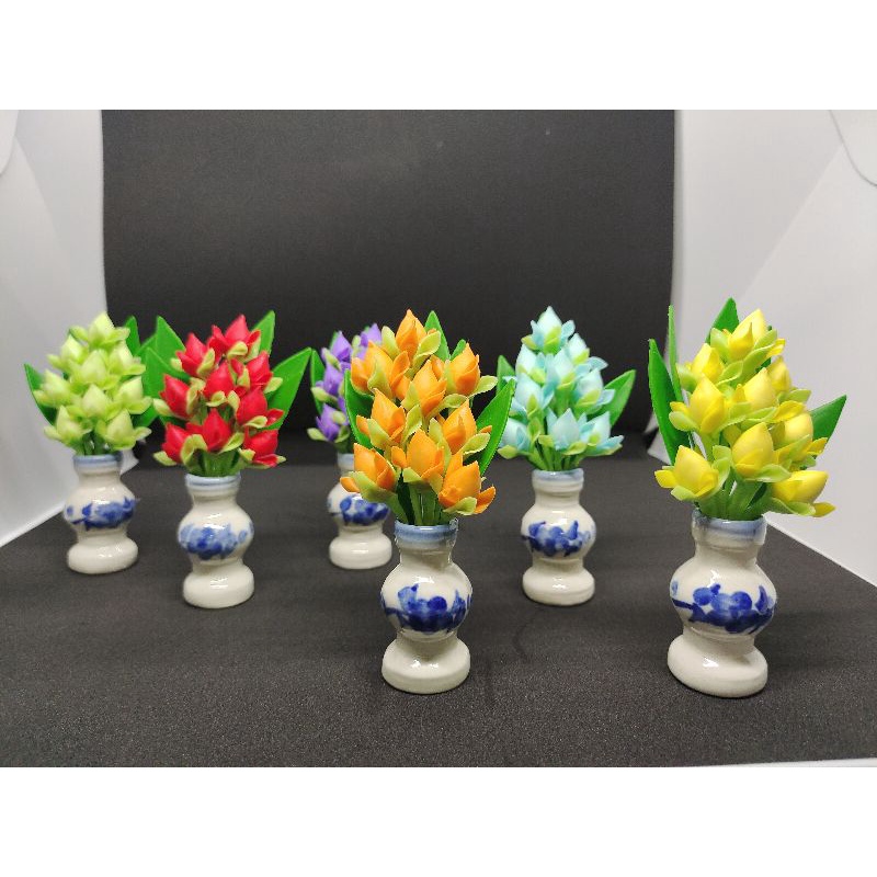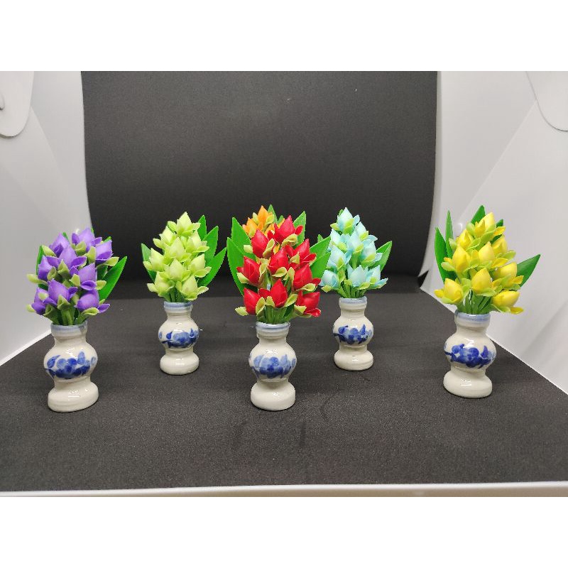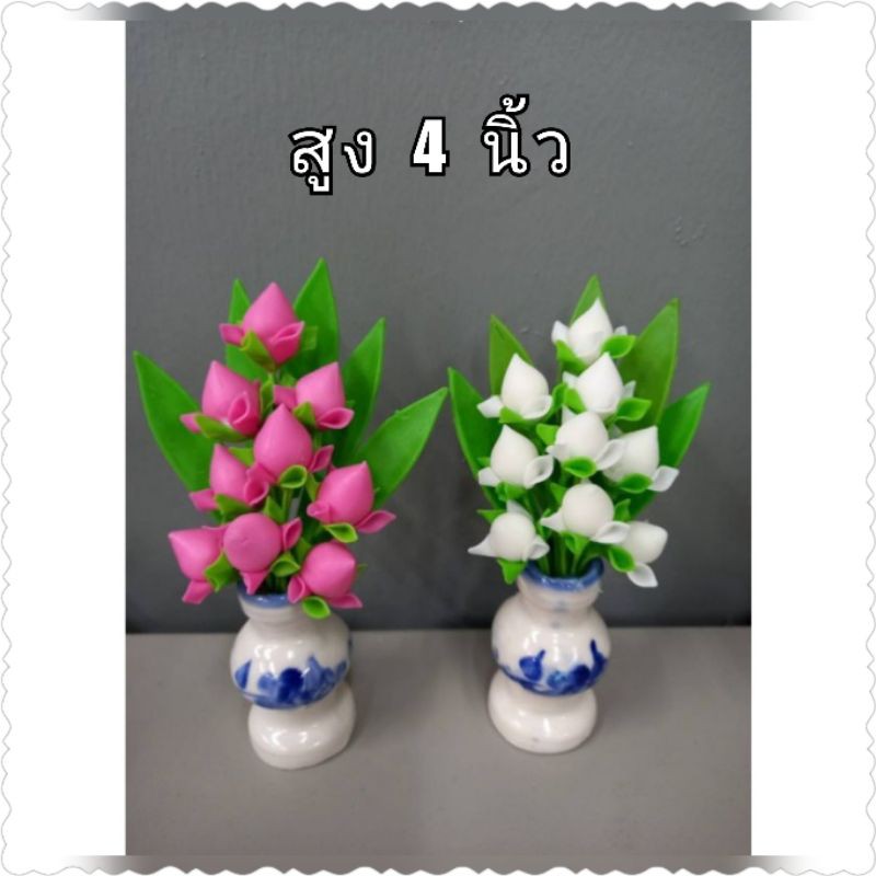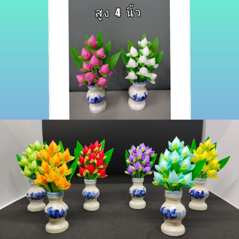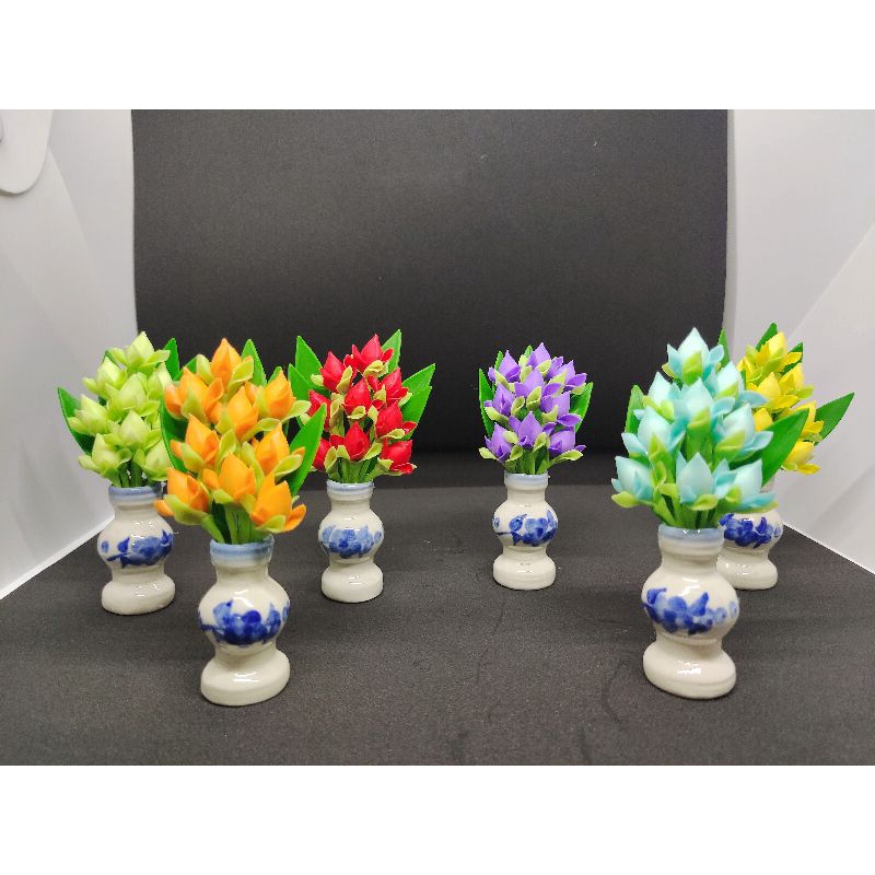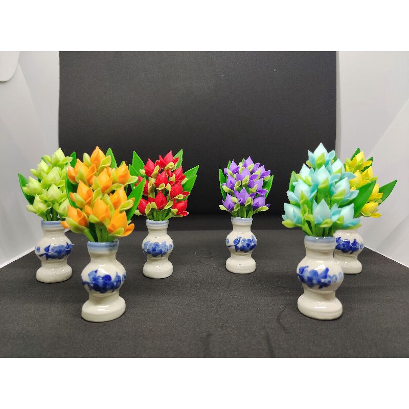 แจกันดอกบัว 9 ดอก ดอกบัวจิ๋ว ดอกบัวดินปั้น สูง 4 นิ้ว งานดินปั้น (ราคา 35 บาท/ชิ้น)