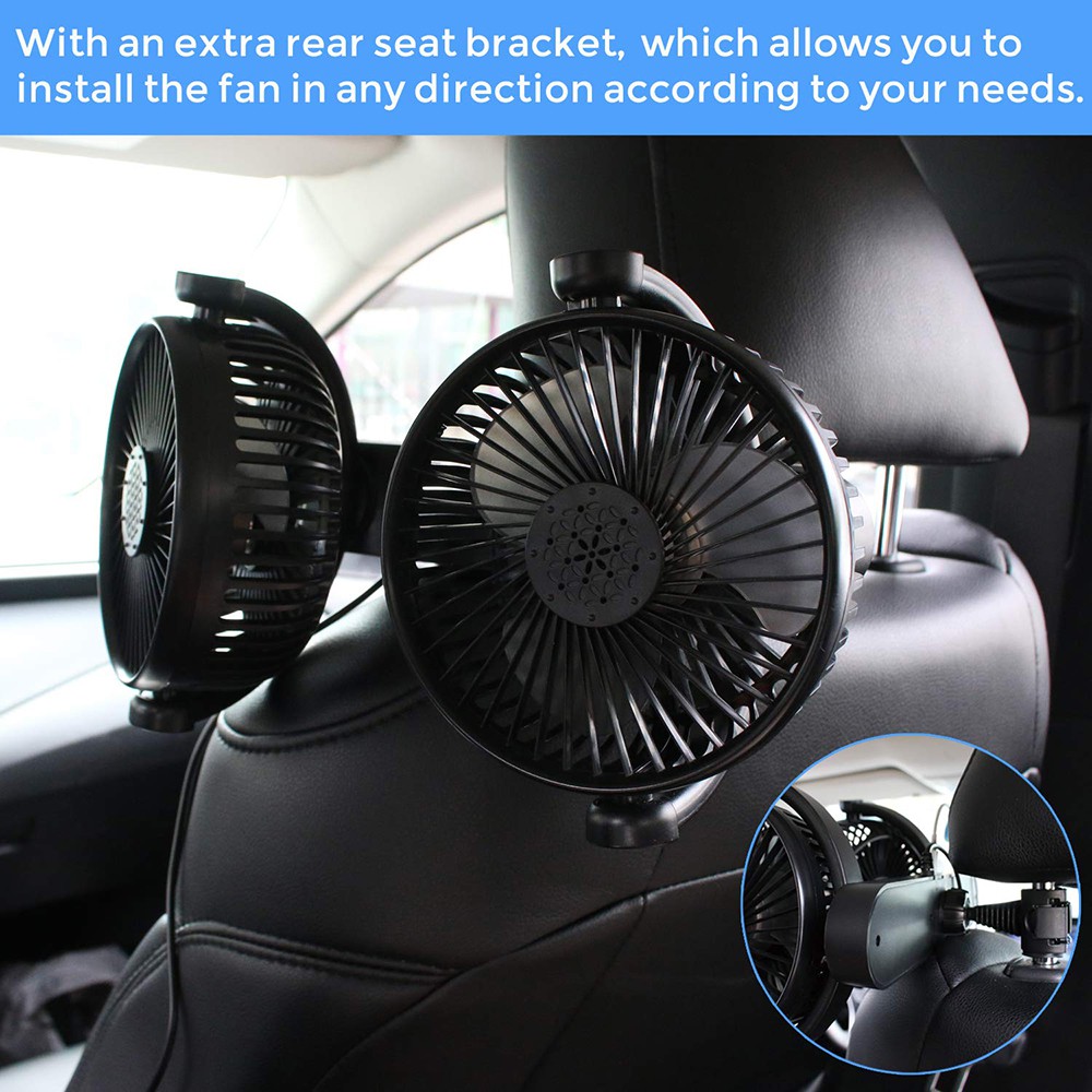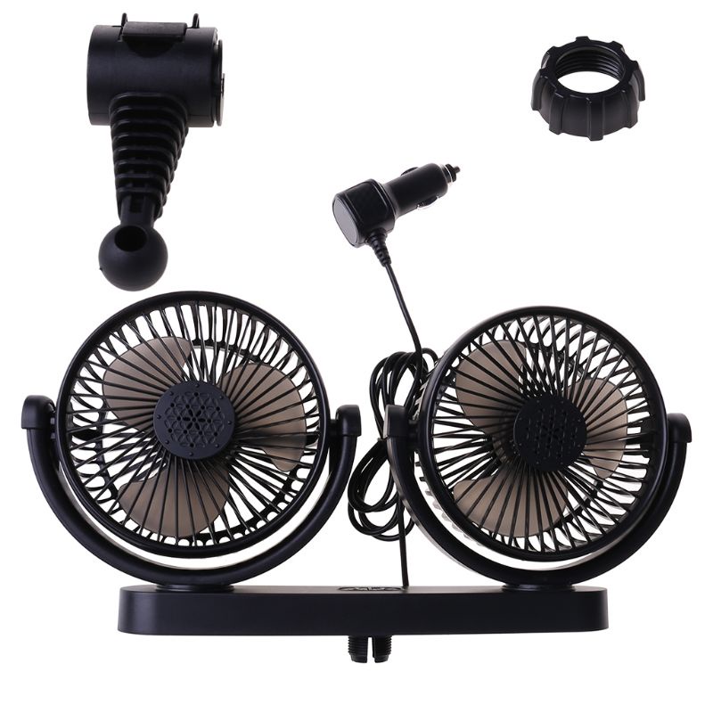CENZIMO พัดลมติดรถยนต์ 12V/24V ขนาด 5.5 นิ้ว พัดลมหนีบหมุนได้ 360 องศา พัดลมระบายความร้อนในรถยนต์ พร้อมระบบปรับความเร็ว 3 ระดับ และปลั๊กสำหรับที่จุดบุหรี่ สำหรับ SUV, RV, ยานพาหนะ