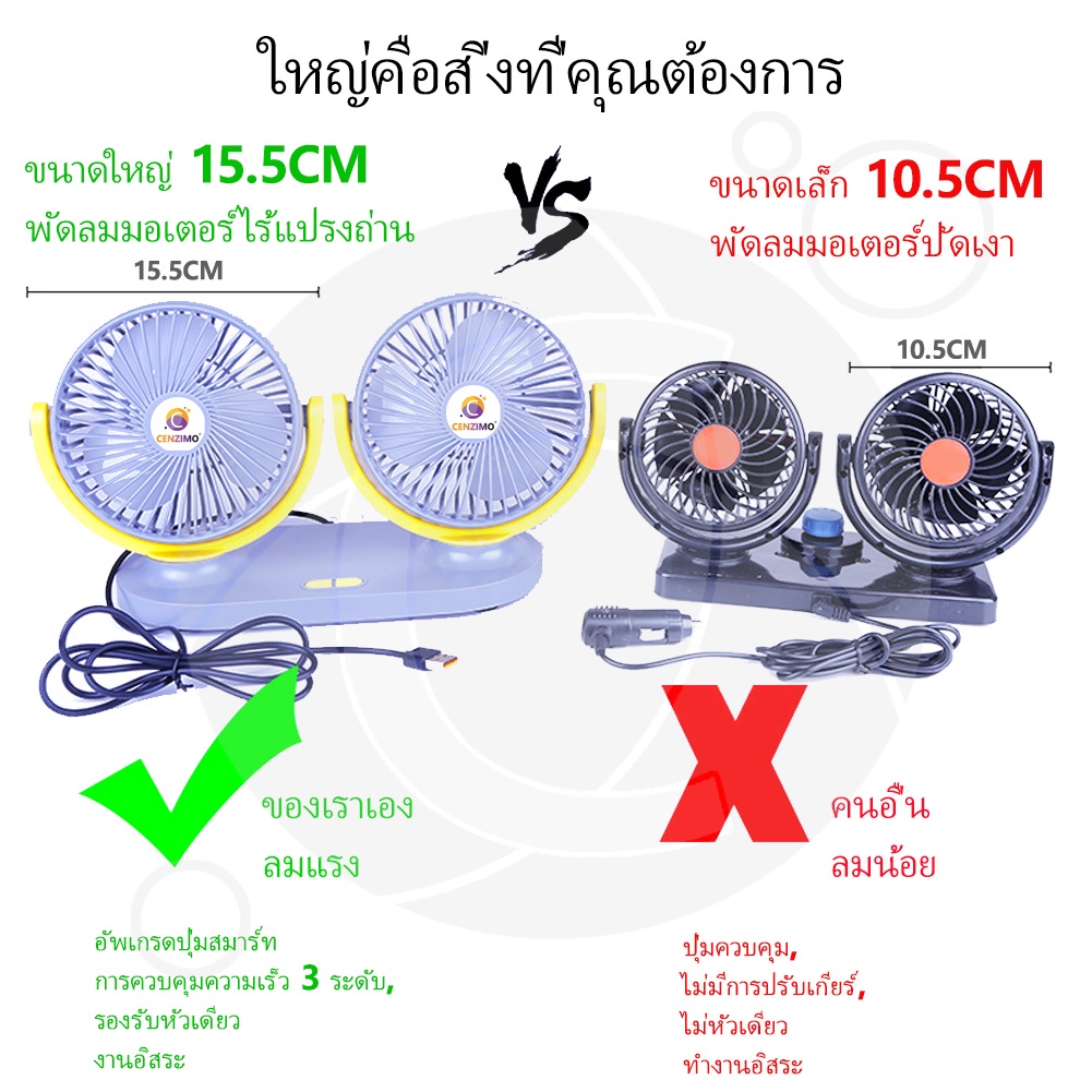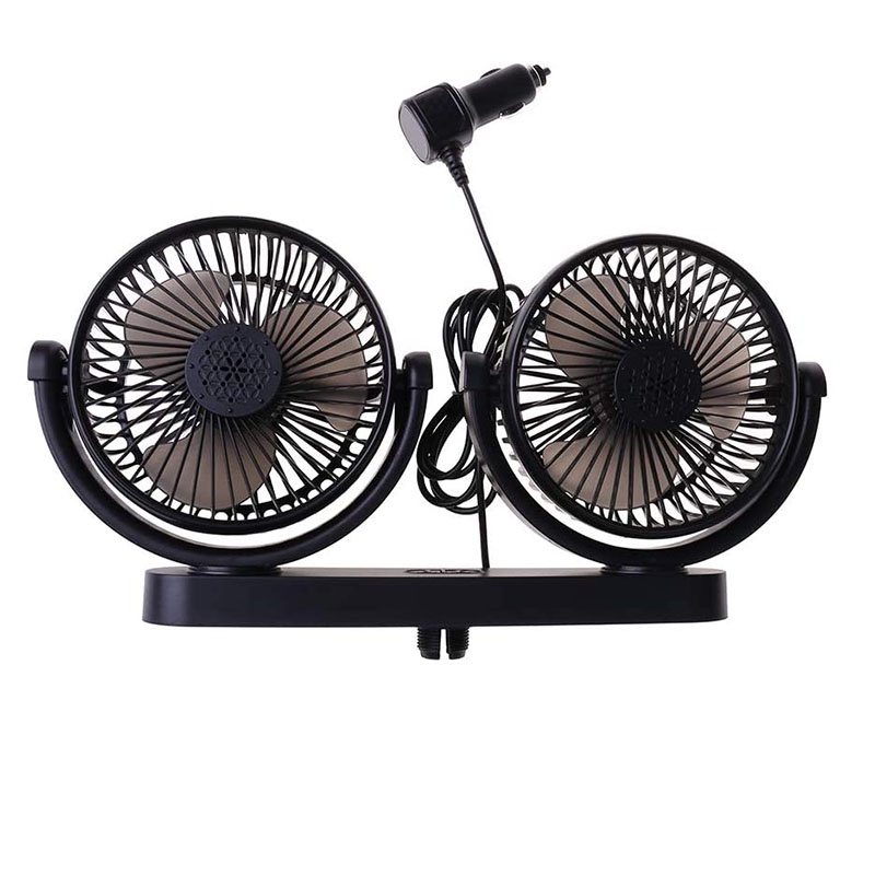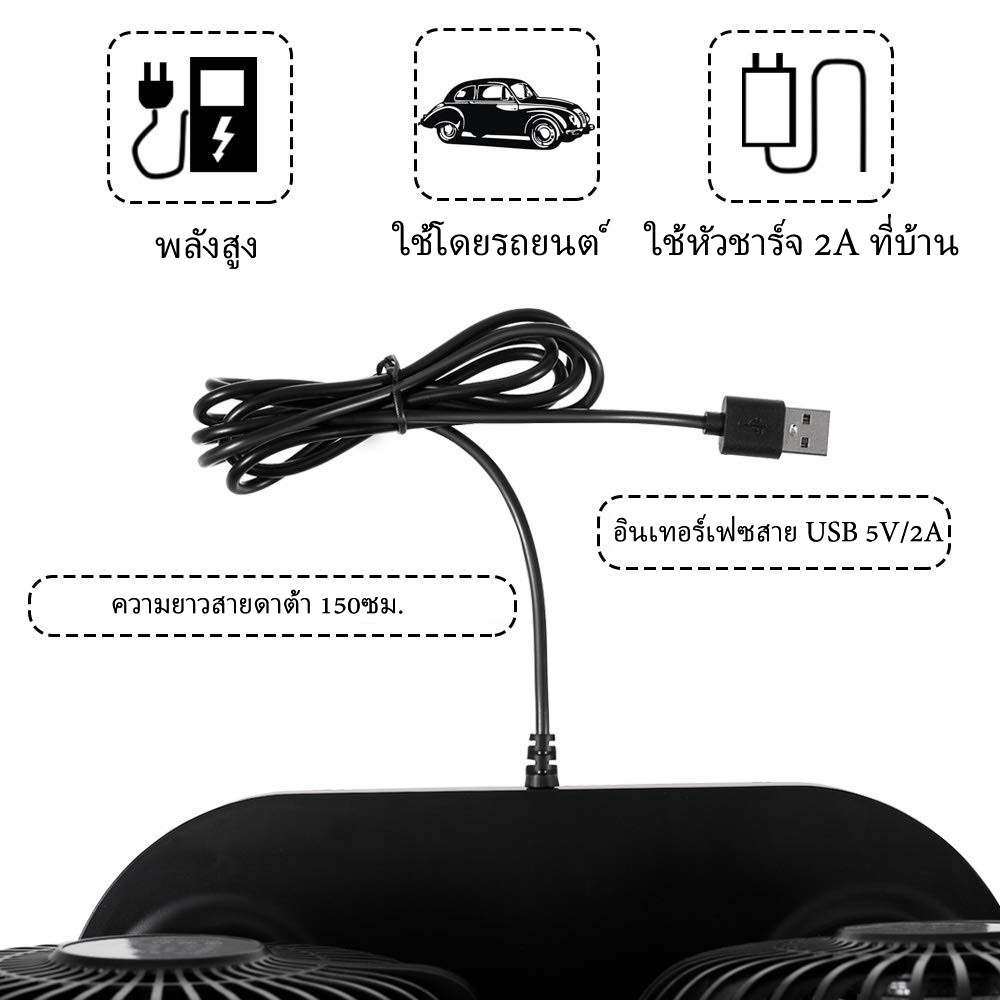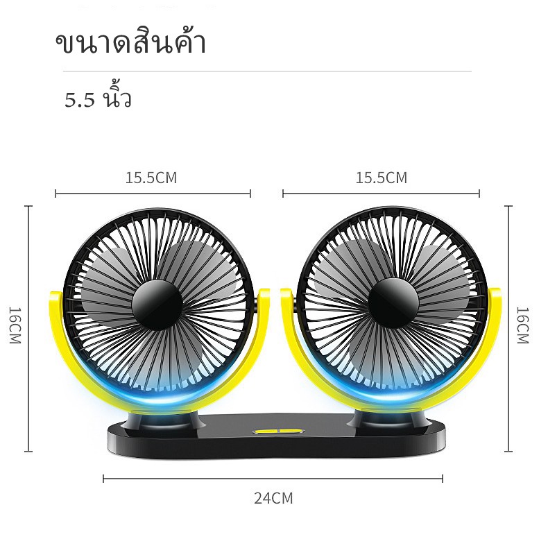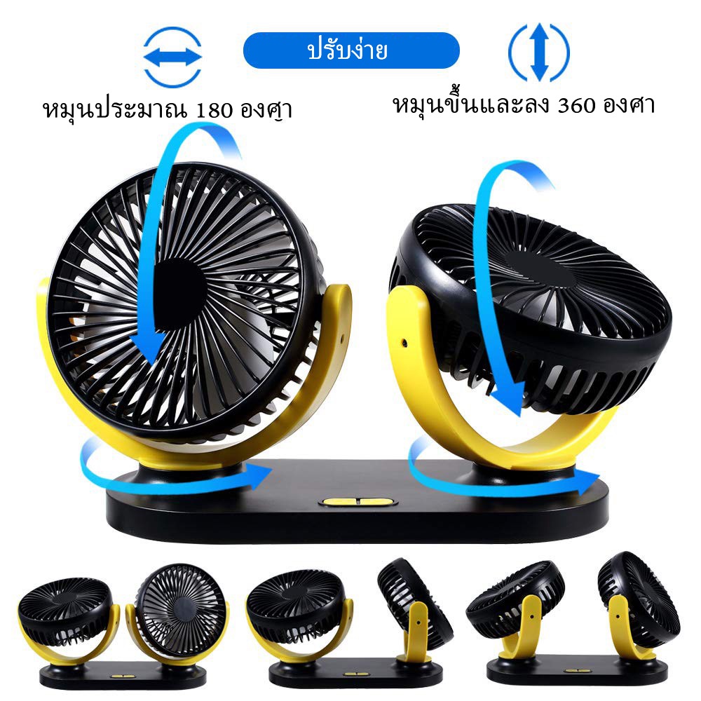พัดลมติดรถยนต์แบบปรับได้2หัว 12V/24V 360° พัดลมติดเบาะหลังรถยนต์สำหรับเด็ก พัดลม USB ติดเบาะหลังรถยน