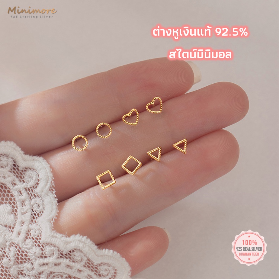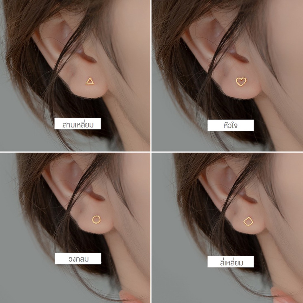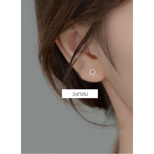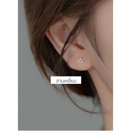 [SE137]🌟ต่างหูเงินแท้ 92.5% 🌟 ต่างหูรูปเรขาคณิตมี 4 แบบ แนวเกาหลี มินิมอล ใส่ติดหูได้ทุกวัน
