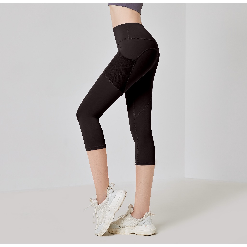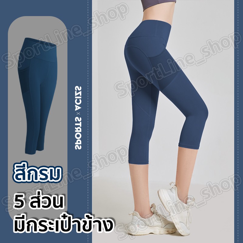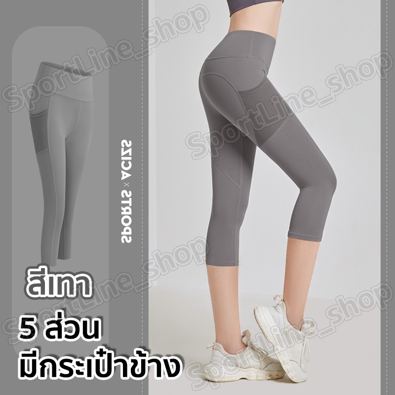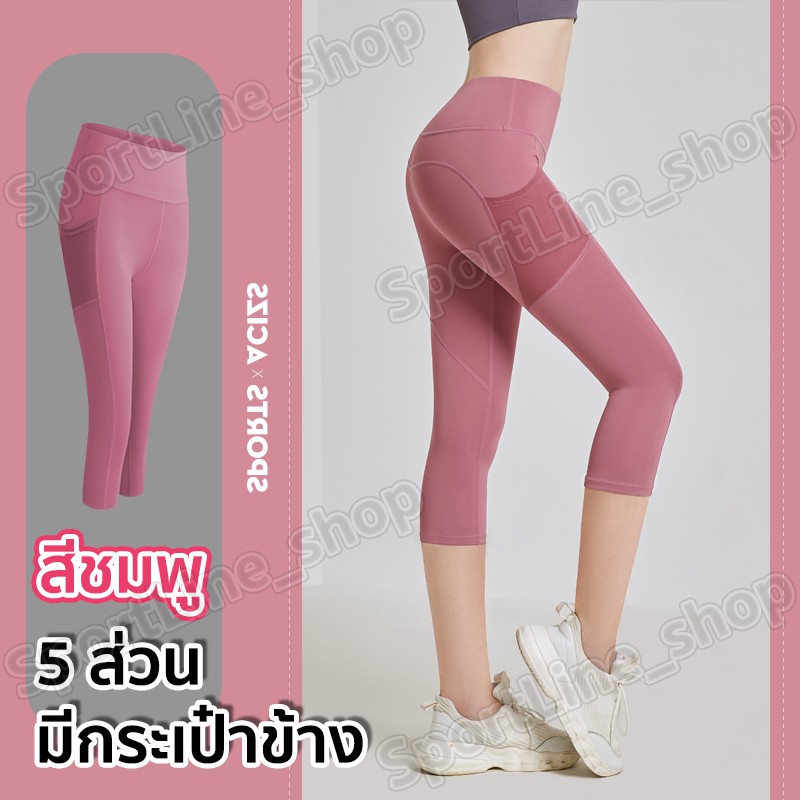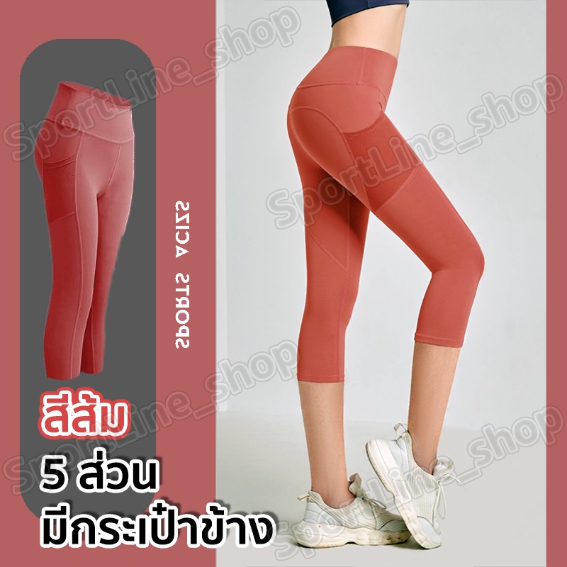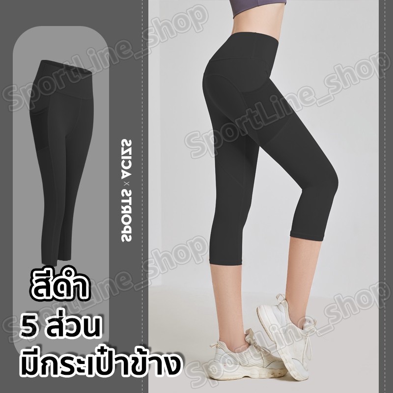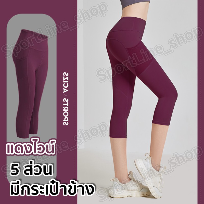 กางเกงโยคะขายาว(5ส่วน) กางเกงเลกกิ้งออกกำลังกายผู้หญิง เป้าสามเหลี่ยม ไร้ตะเข็บเป้าไม่ยิ้ม (มีกระเป๋าข้าง)S-3XL มี13 สี