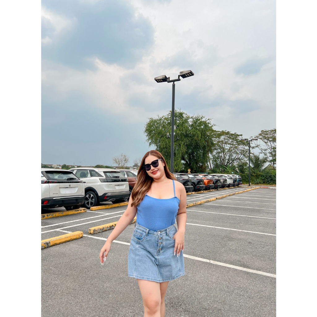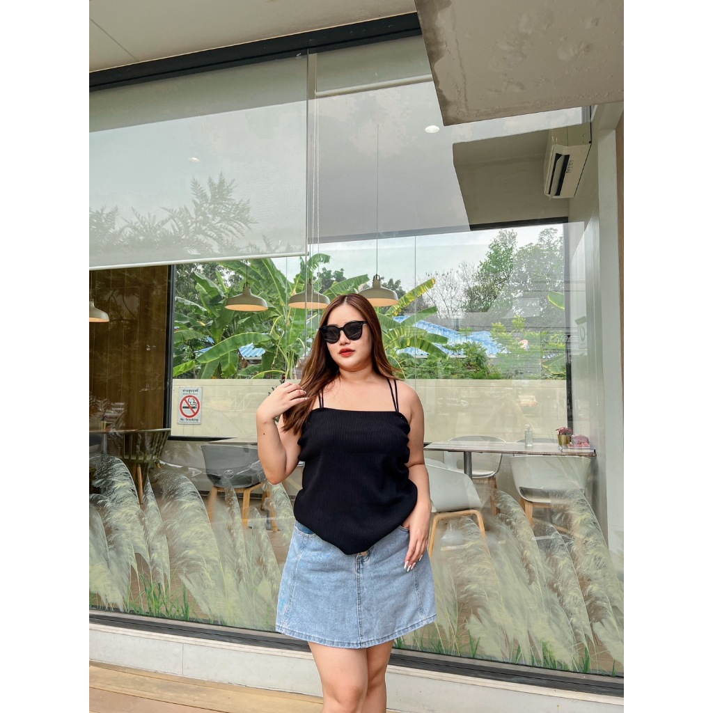 CiCi Plus+(6372) เ สื้อสายเดี่ยวไหมพรม สีพื้น ผ้ายืดใส่สบาย สาวอวบใส่แมทซ์กับอะไรก็สวยแซ่บ