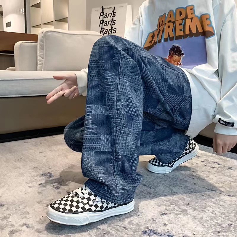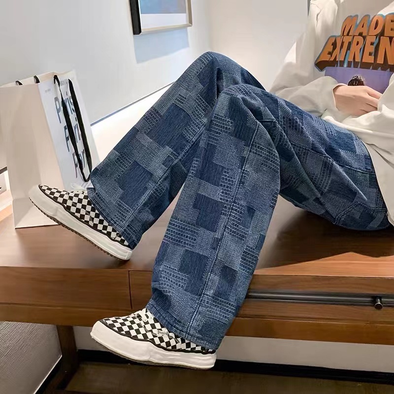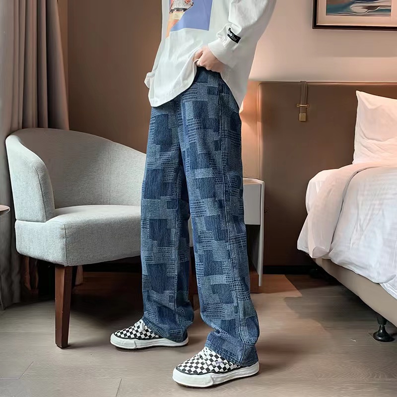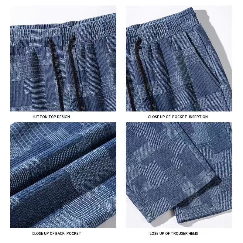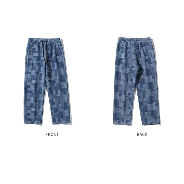 กางเกงยีนส์ผู้ชายลายสก๊อต เอวยางยืดมีผูกเชือก *7072
