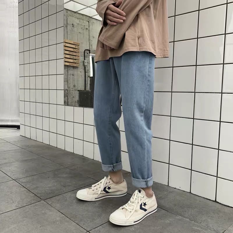 กางเกงยีนผู้ชาย สีทึบสไตล์เกาหลี กางเกงยีนส์ย้อนยุค K112