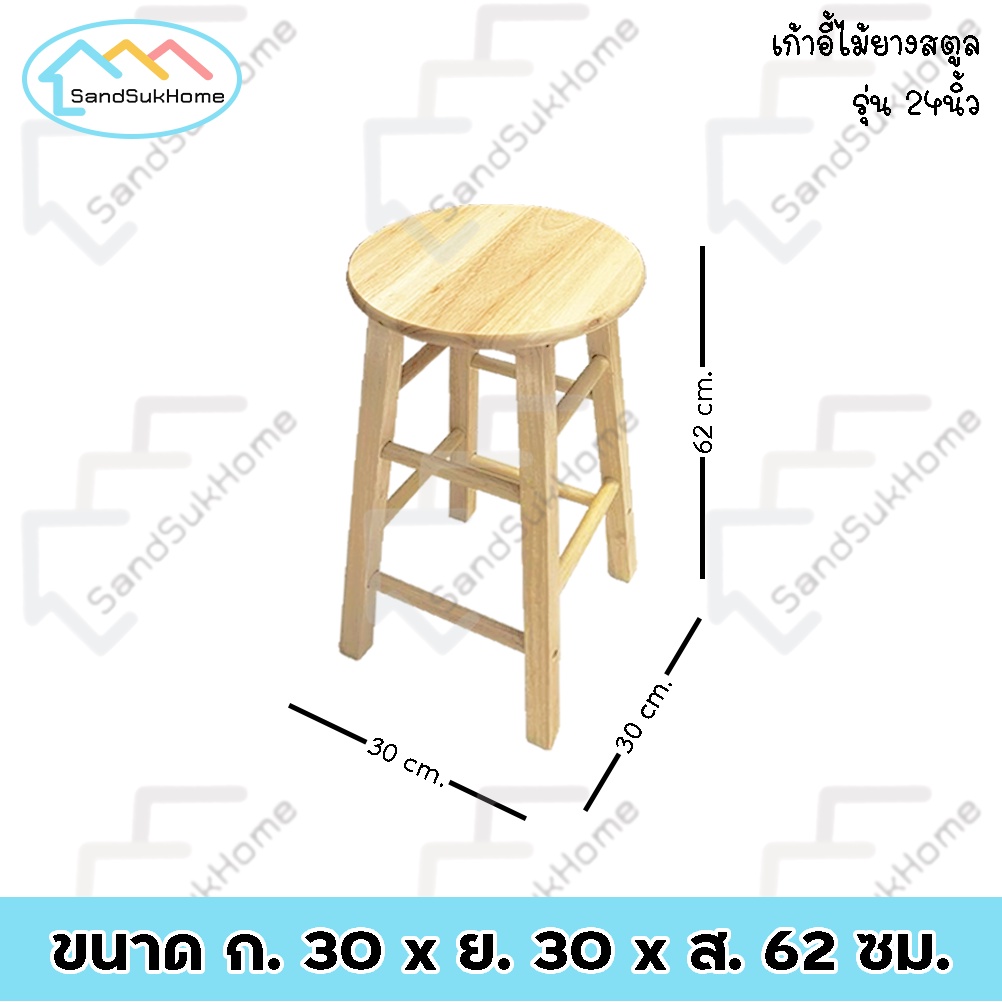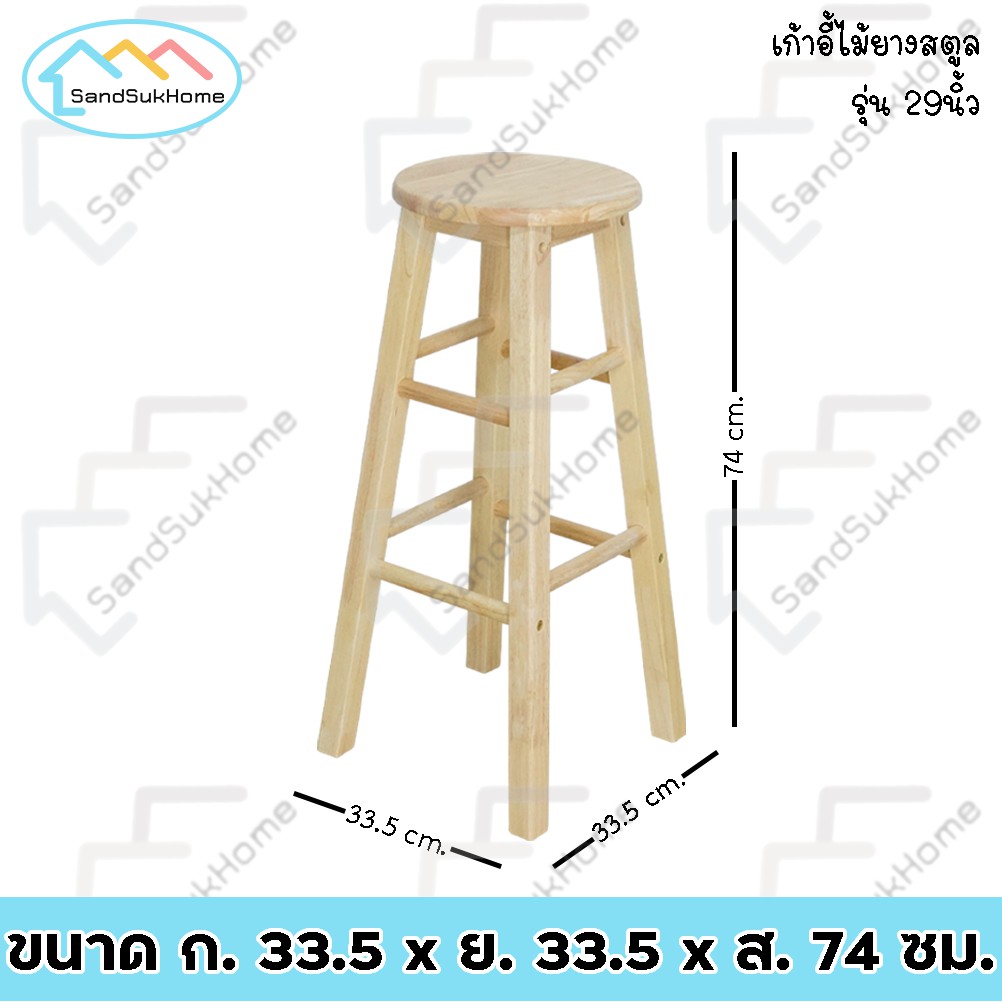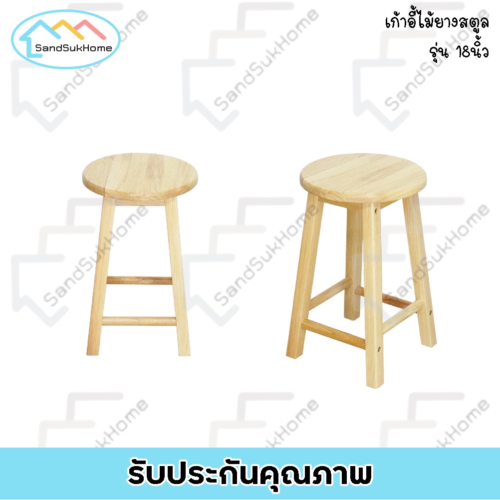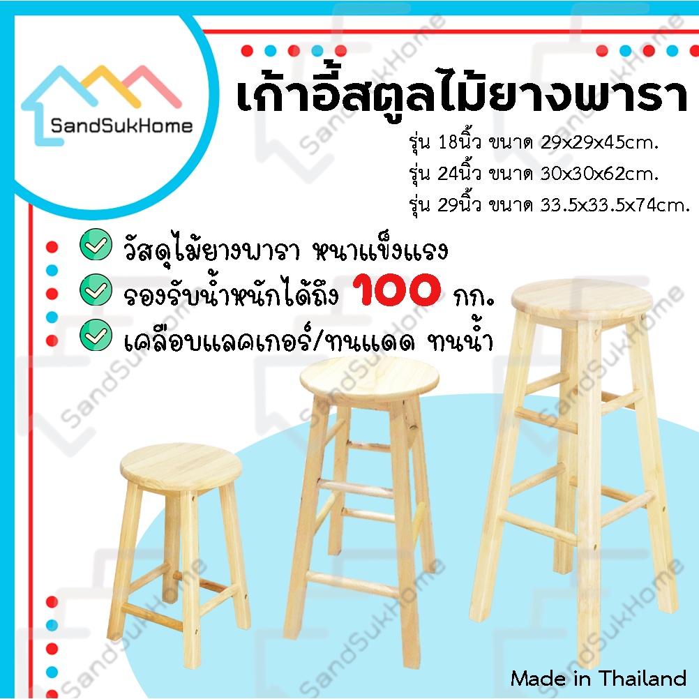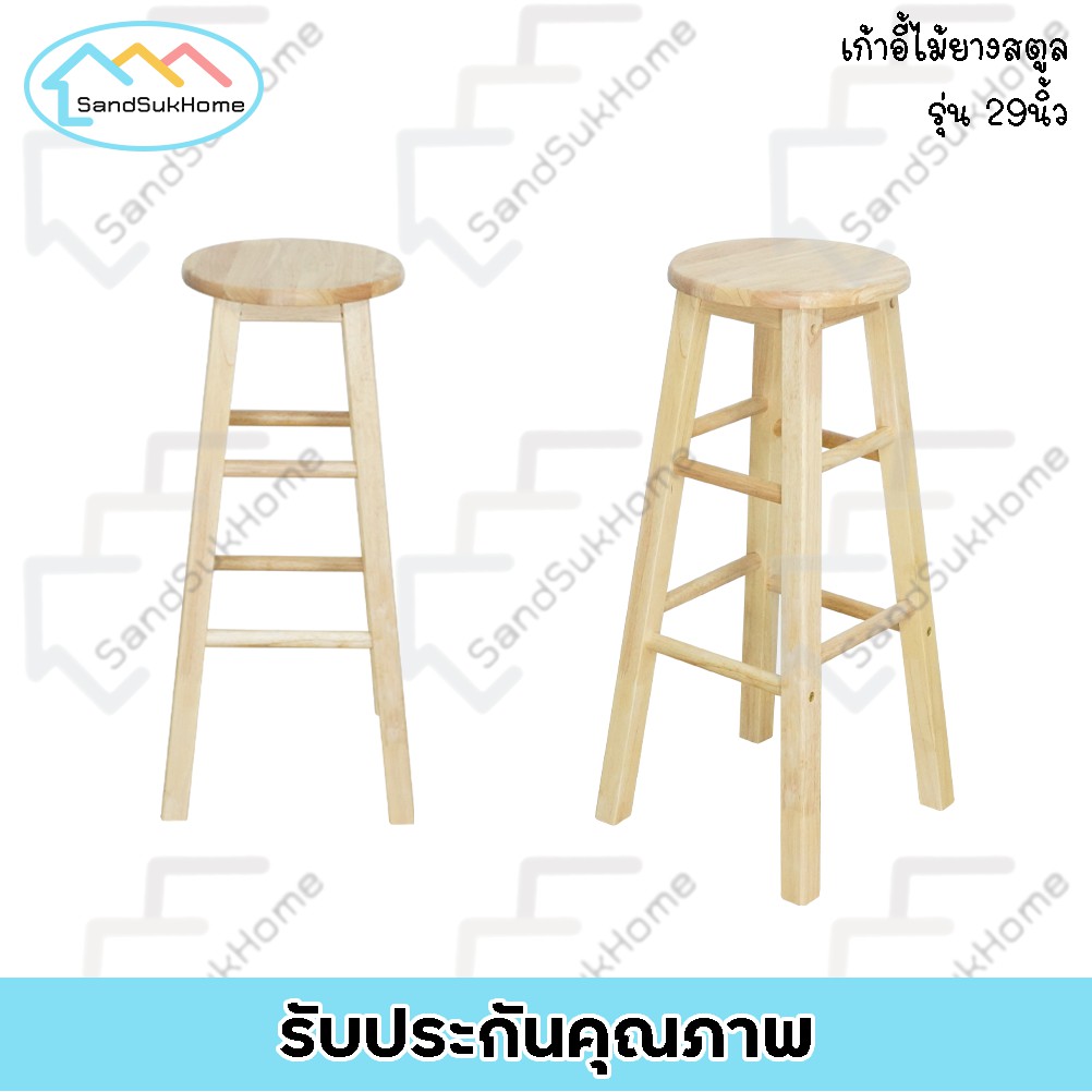 SandSukHome เก้ าอี้ สตูล ทรงเตี้ย/ทรงสูง ไม้ยางพารา เคลือบเงา กันเชื้อรา