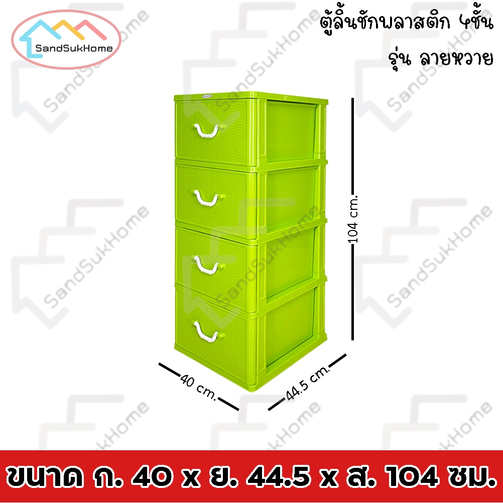 SandSukHome ตู้ลิ้นชักพลาสติก 4ชั้น กล่องเก็บของ กล่องใส่ของชั้นวางของ รุ่น ลายหวาย