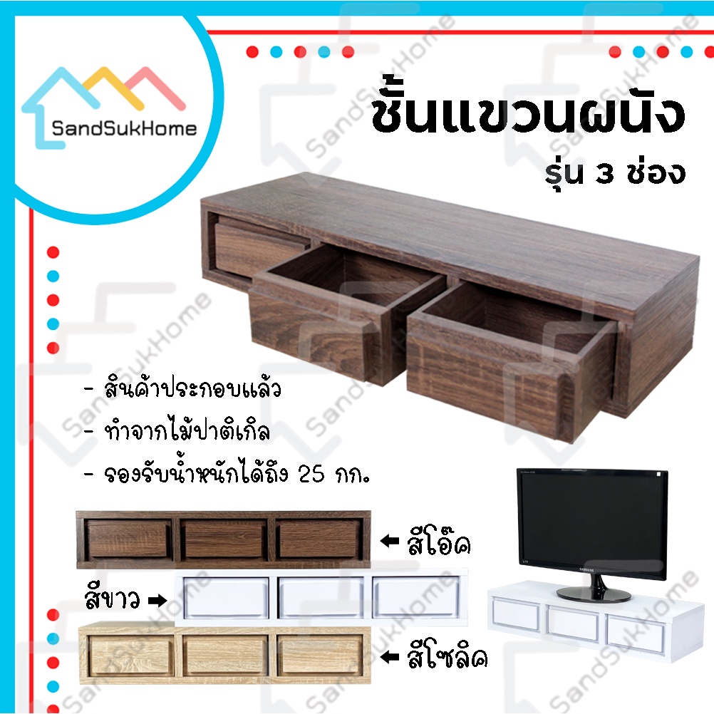 SandSukHome ชั้ นแขวนผนัง 3 ช่อง รับน้ำหนักได้25กิโล กล่องเก็บของ สไตล์loft