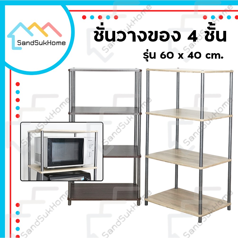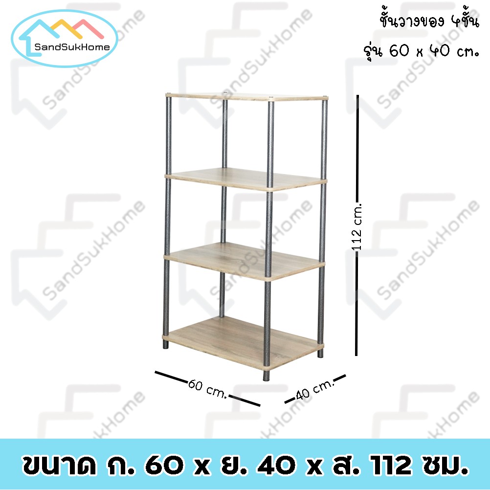 SandSukHome ชั้นวางของ 2-3-4ชั้น เสาเหล็ก ประกอบง่ายไม่ต้องใช้เครื่องมือ หน้ากว้าง 60ซม (S42/N43/N434)