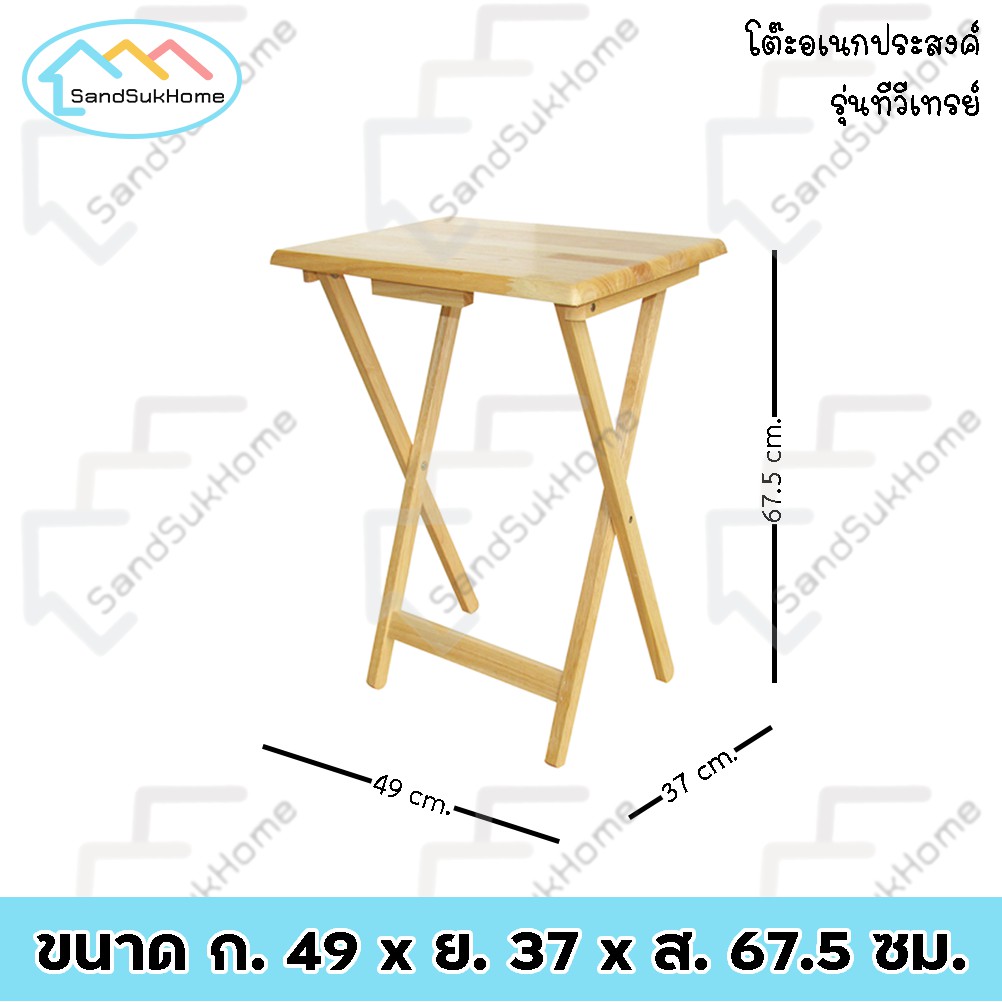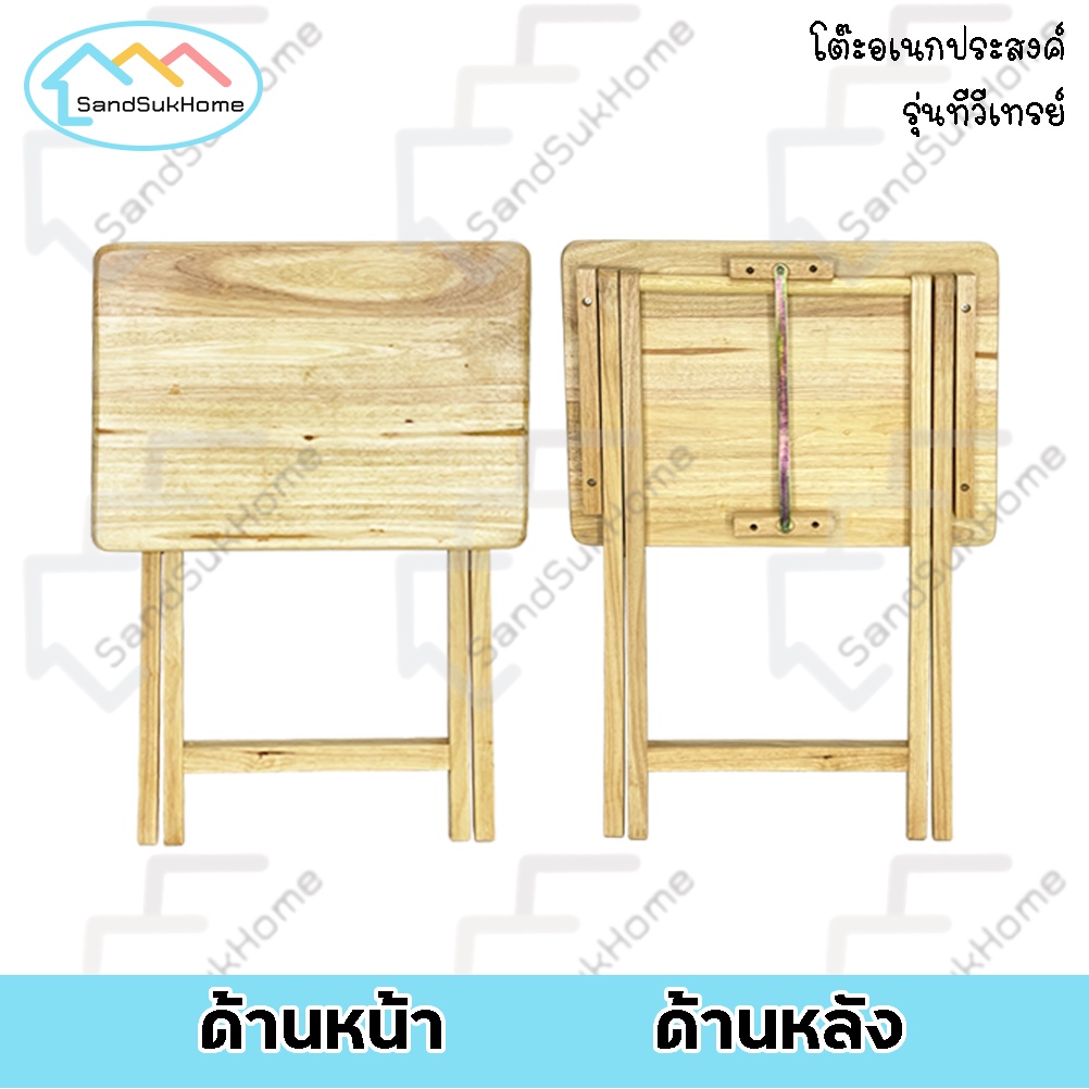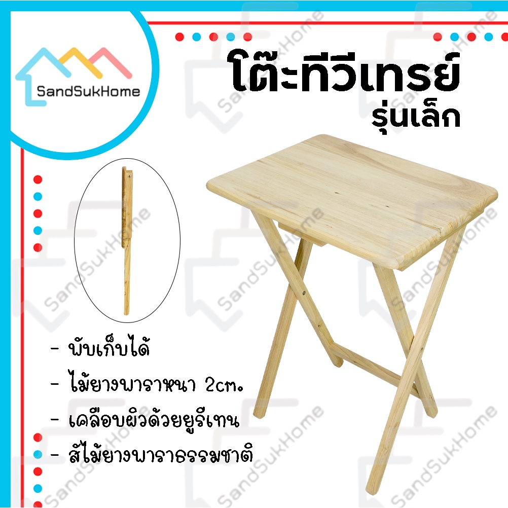 SandSukHome โ ต๊ะพับ ไม้ยางพารา หน้าโต๊ะเคลือบเงา กันเชื้อรา รุ่น ทีวีเทรย์ เล็ก