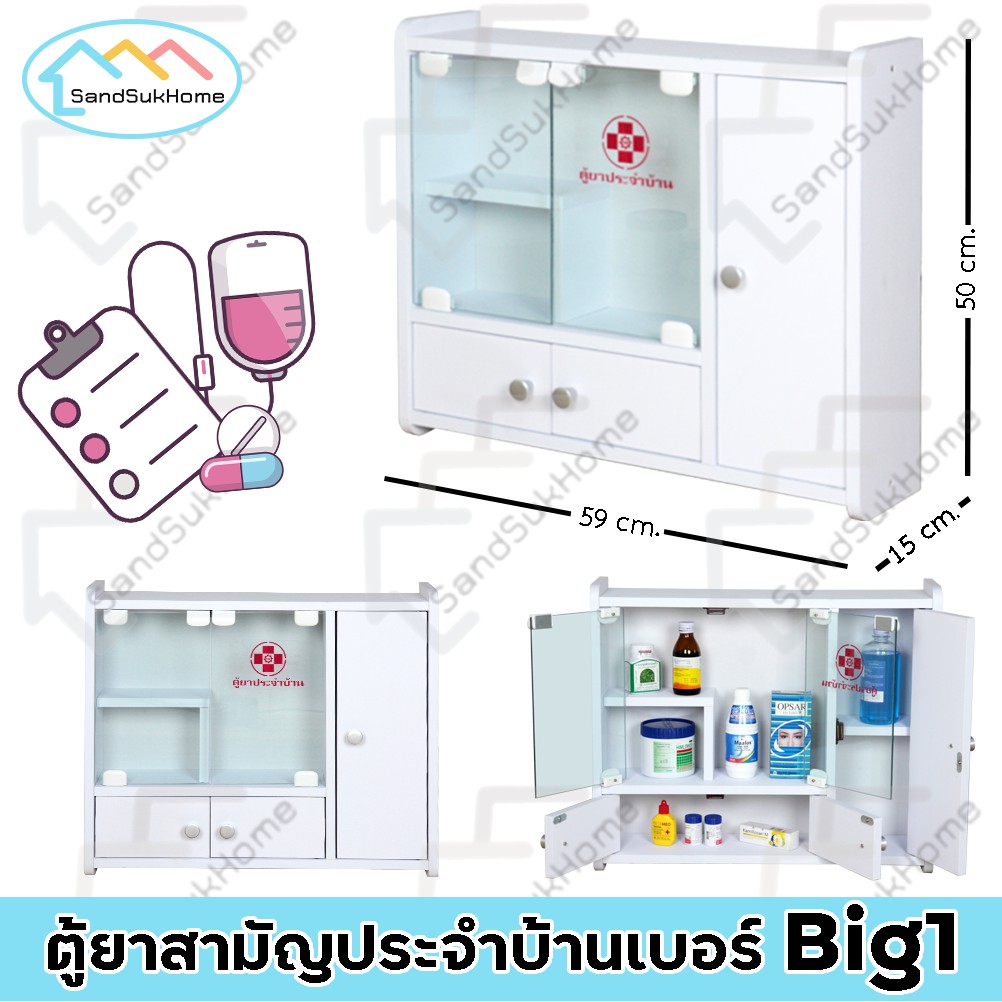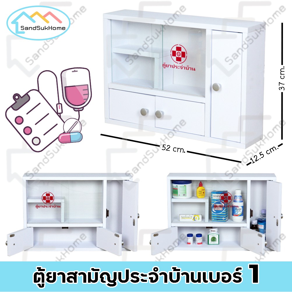 SandSukHome ตู้ยาสามัญประจำบ้าน ติดผนัง ชั้นวางของ กล่องเก็บของ จัดระเบียบเก็บยาให้เป็นที่