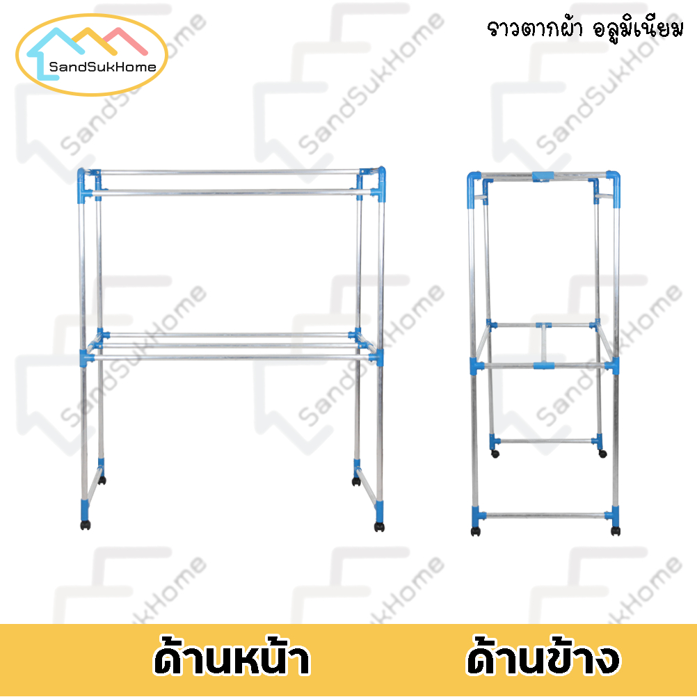 SandSukHome ราวตากผ้า อลูมิเนียม (เส้นเรียบ) มีล้อ แขวนผ้า 1.0ม. / 1.2ม. / 1.5ม. / 2.0ม.