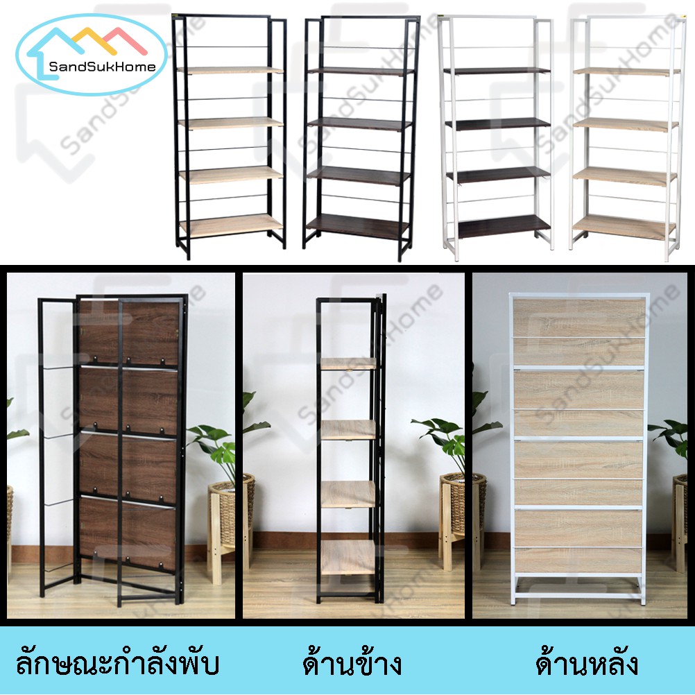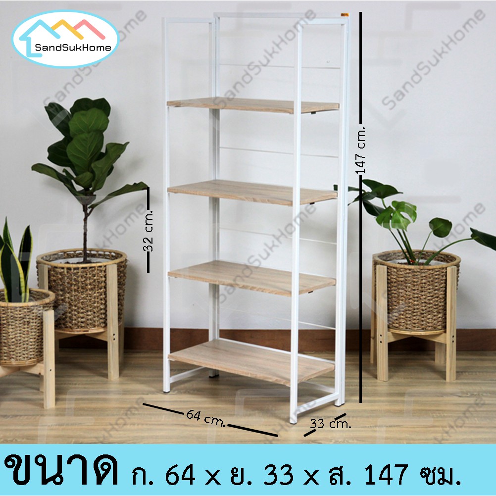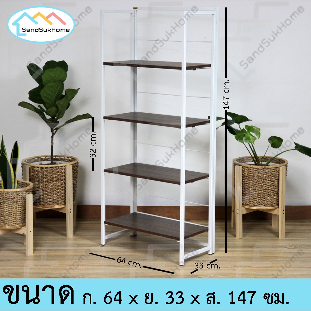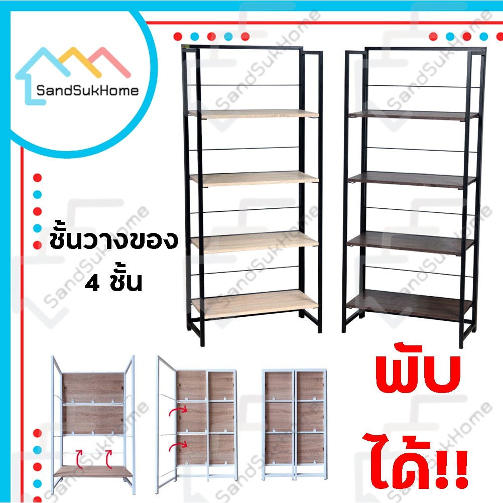 SandSukHome ชั้ นวางของ 4ชั้น โครงเหล็ก สามารถพับเก็บได้ หน้ากว้าง 64ซม (ประกอบแล้วพร้อมใช้งาน)
