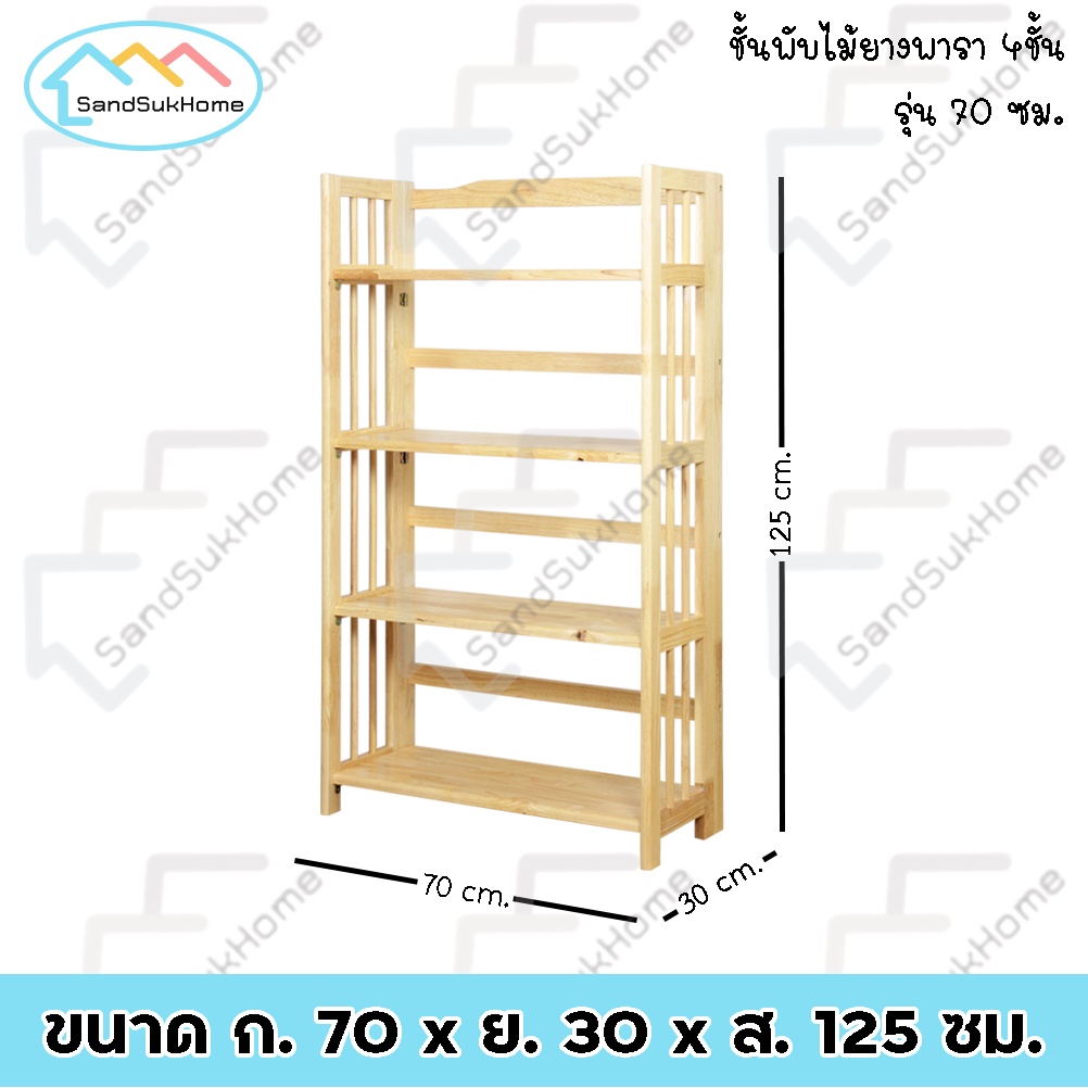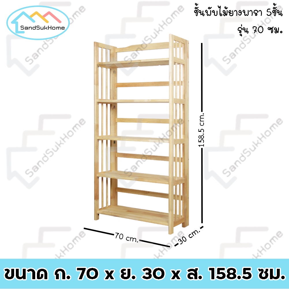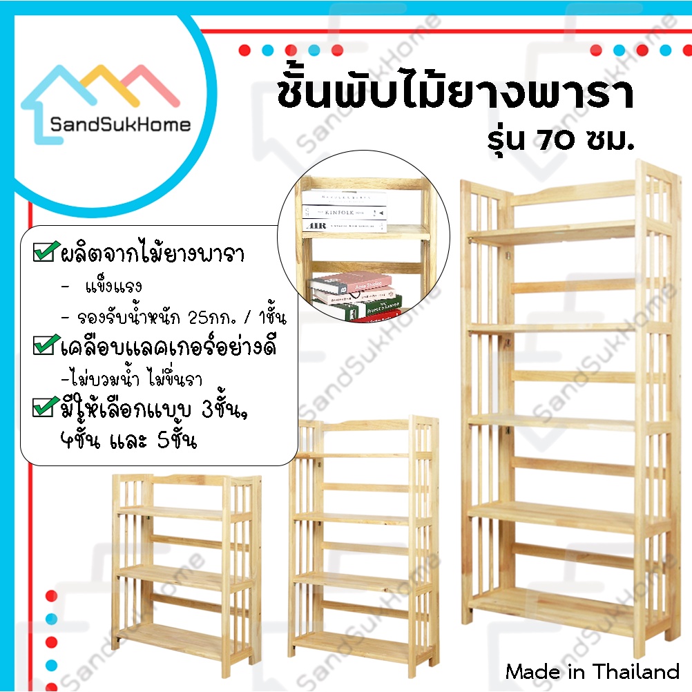 SandSukHome ชั้นวางของ ไม้ยางพารา 3,4,5ชั้น สามารถพับเก็บได้ หน้ากว้าง 70ซม (ประกอบแล้วพร้อมใช้งาน)