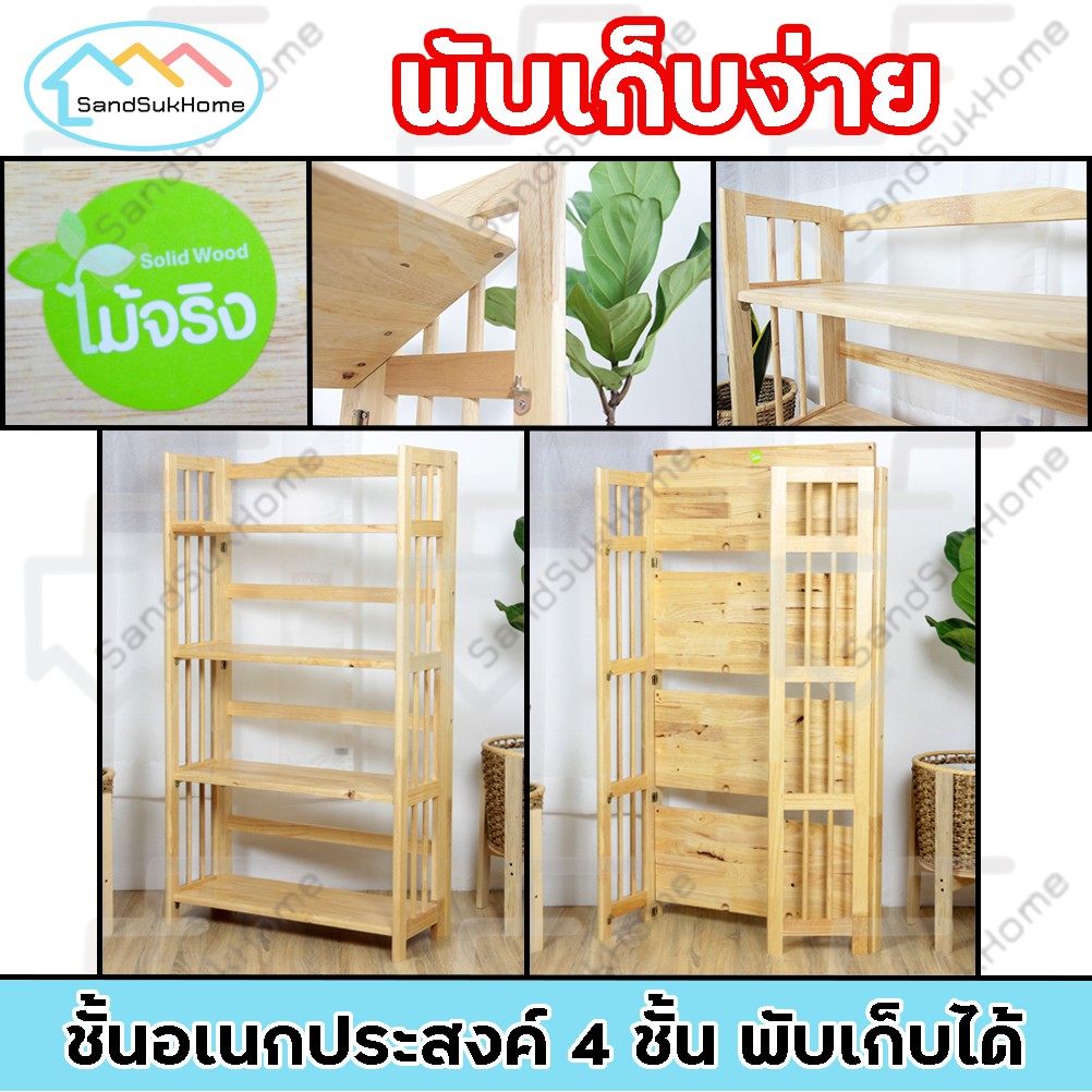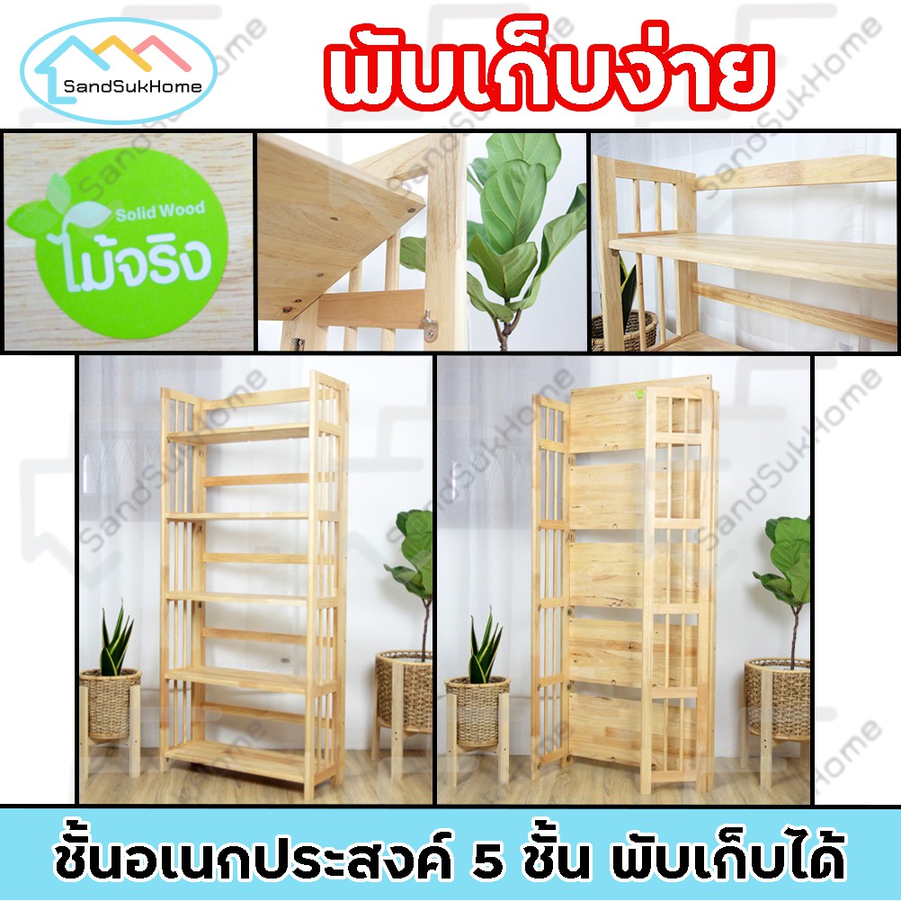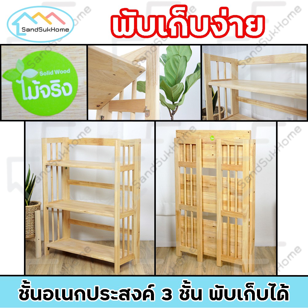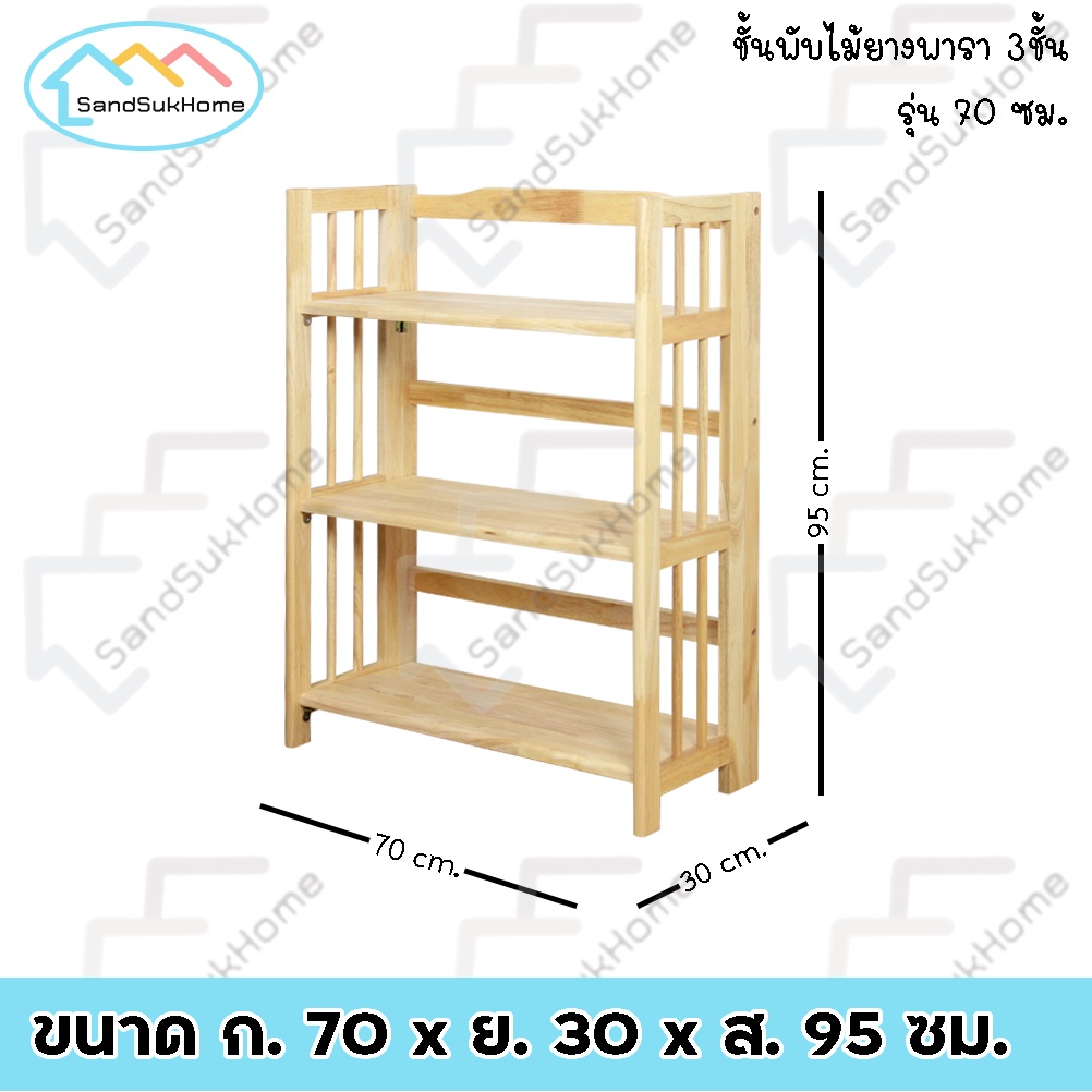 SandSukHome ชั้นวางของ ไม้ยางพารา 3,4,5ชั้น สามารถพับเก็บได้ หน้ากว้าง 70ซม (ประกอบแล้วพร้อมใช้งาน)