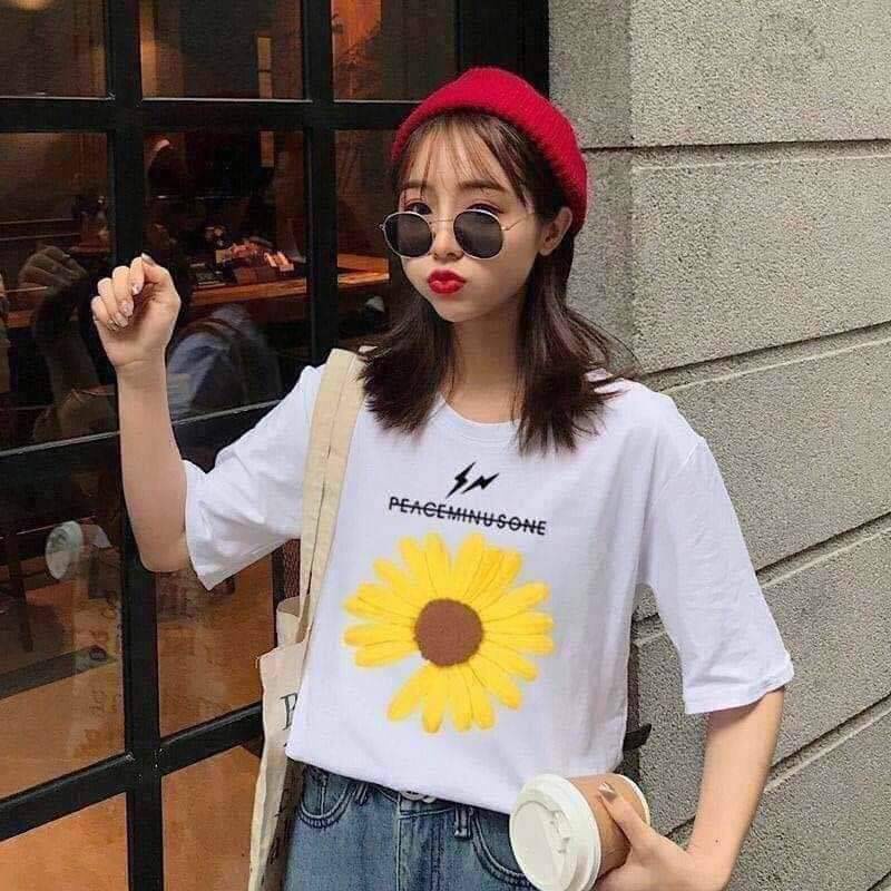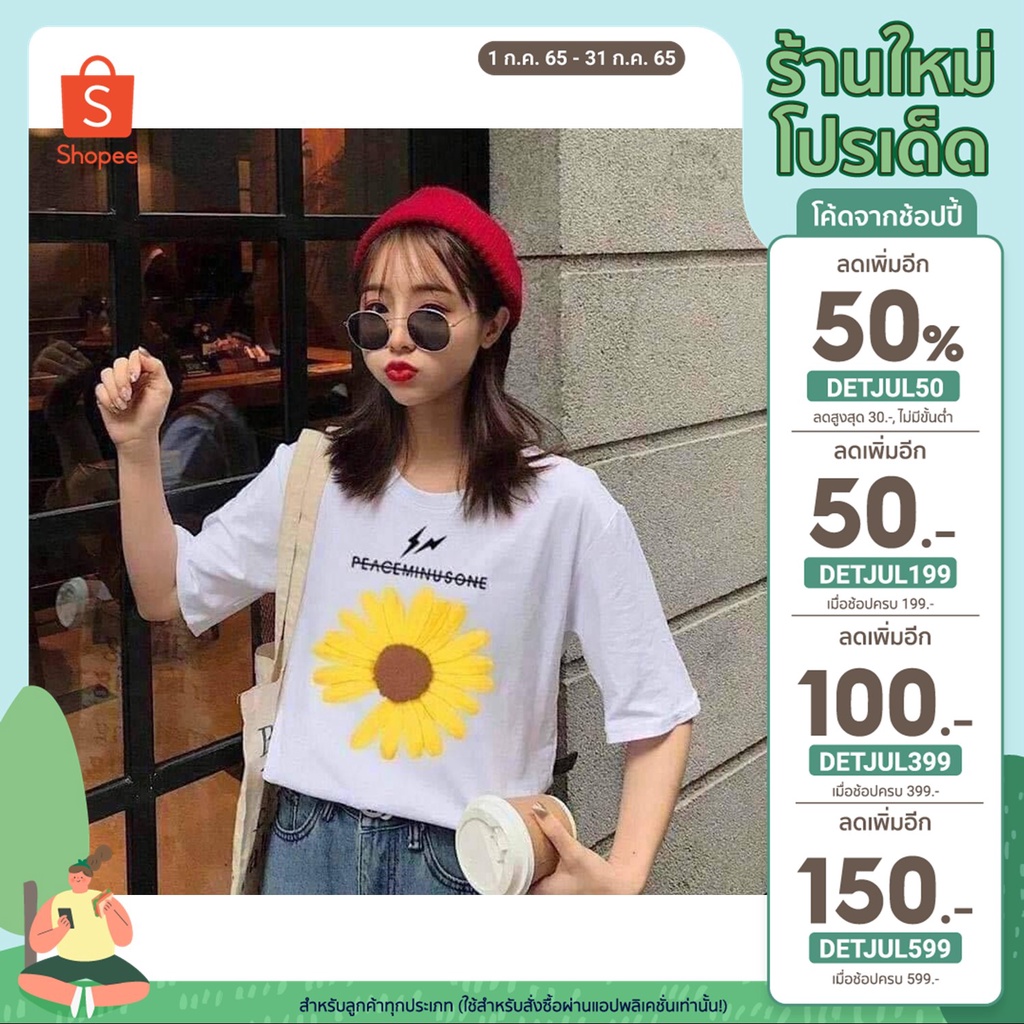 [เหลือ 24฿ ใช้โค้ด INCS83L] เสื้อยืดสกรีนลายดอกเดซี่ ขนาดฟรีไซส์
