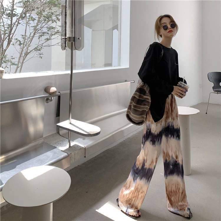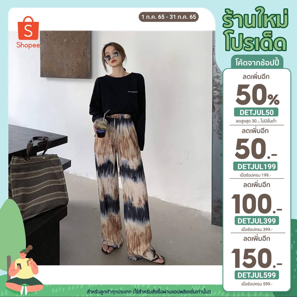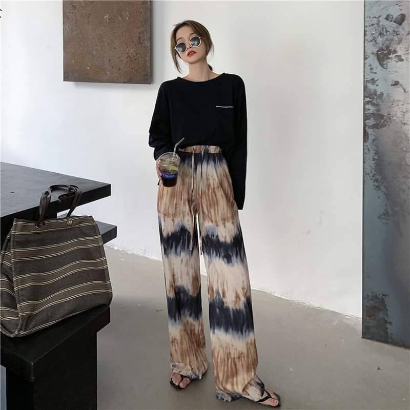 [เหลือ 24฿ ใช้โค้ด INCS83L] กางเกงสกีนมัดย้อมเนื้อผ้าคัตตอลผสม ฟรีไซส์
