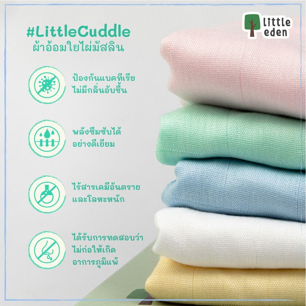 Little Eden - ผ้าอ้อมห่อตัวใยไผ่ 100% (สีพื้น) 40X40 นิ้ว