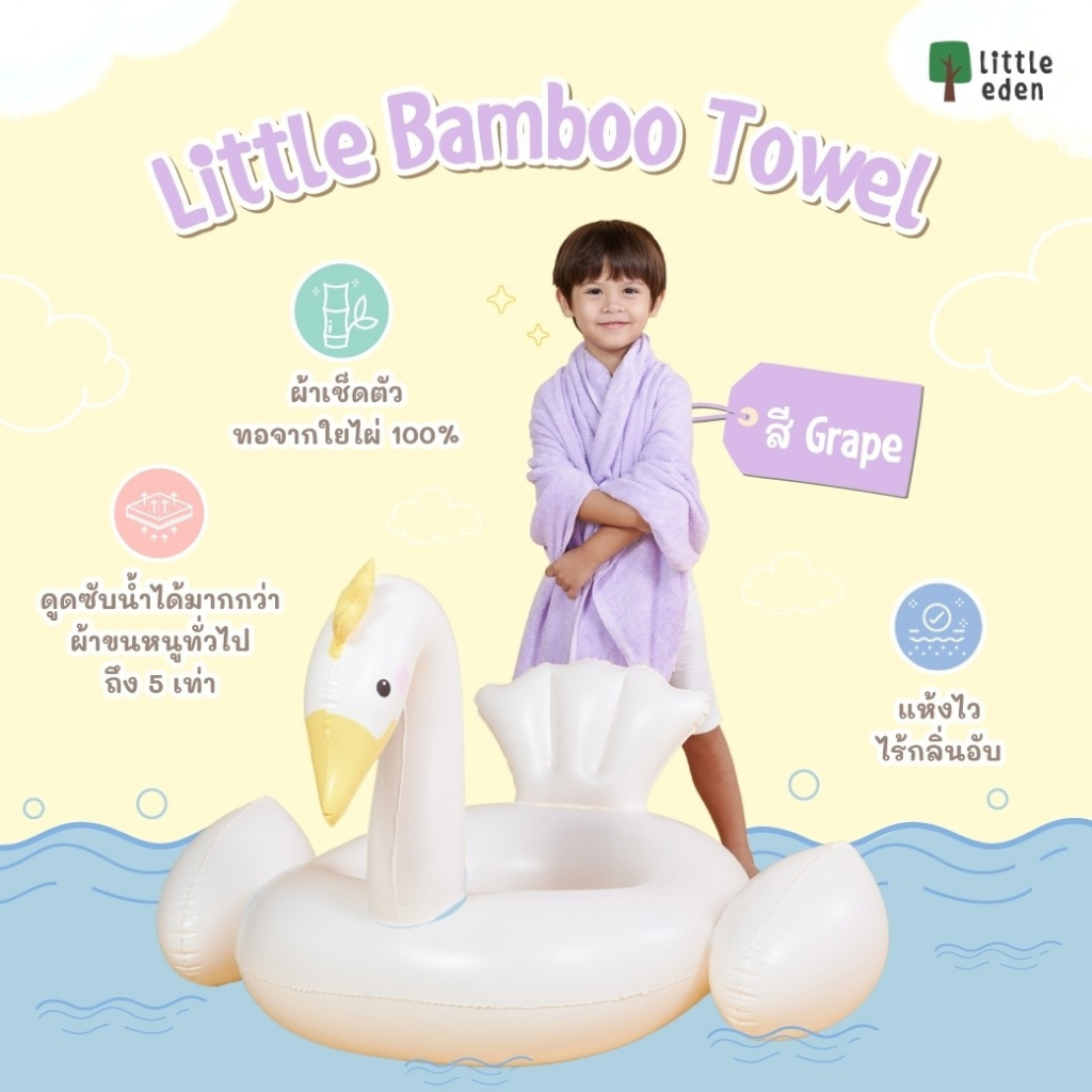 Little Eden - ผ้าขนหนูเช็ดตัวใยไผ่ 100% สำหรับเด็ก 24X48 นิ้ว