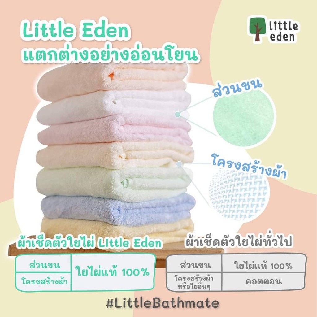 Little Eden - ผ้าขนหนูเช็ดผมใยไผ่ 100% 15X30 นิ้ว