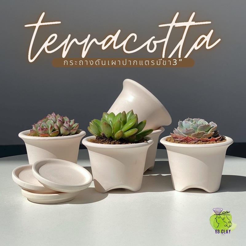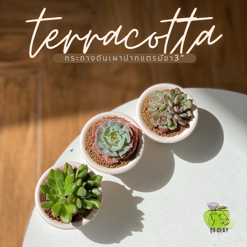 กระถางดินเผาแคตตัส กระถางกุหลาบหิน ไลทอป ทรงปากแตร2.5”